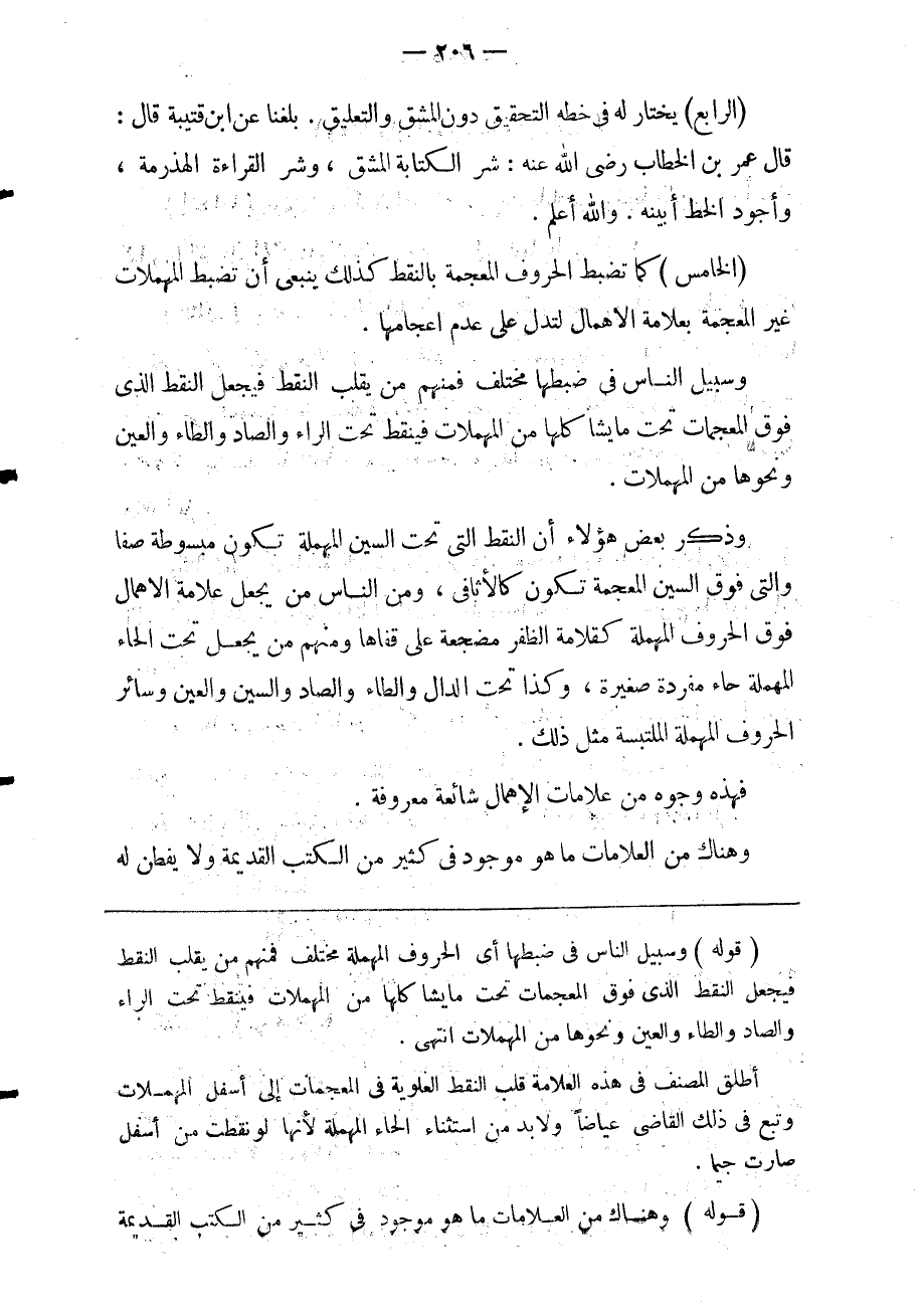 الخامس: كما تضبط الحروف المعجمة بالنقط كذلك ينبغي أن تضبط المهملات غير المعجمة بعلامة إلاهمال لتدل على عدم إعجامها.