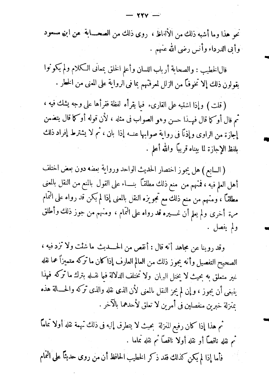 السابع: هل يجوز اختصار الحديث الواحد ورواية بعضه دون بعض؟ اختلف أهل العلم فيه: