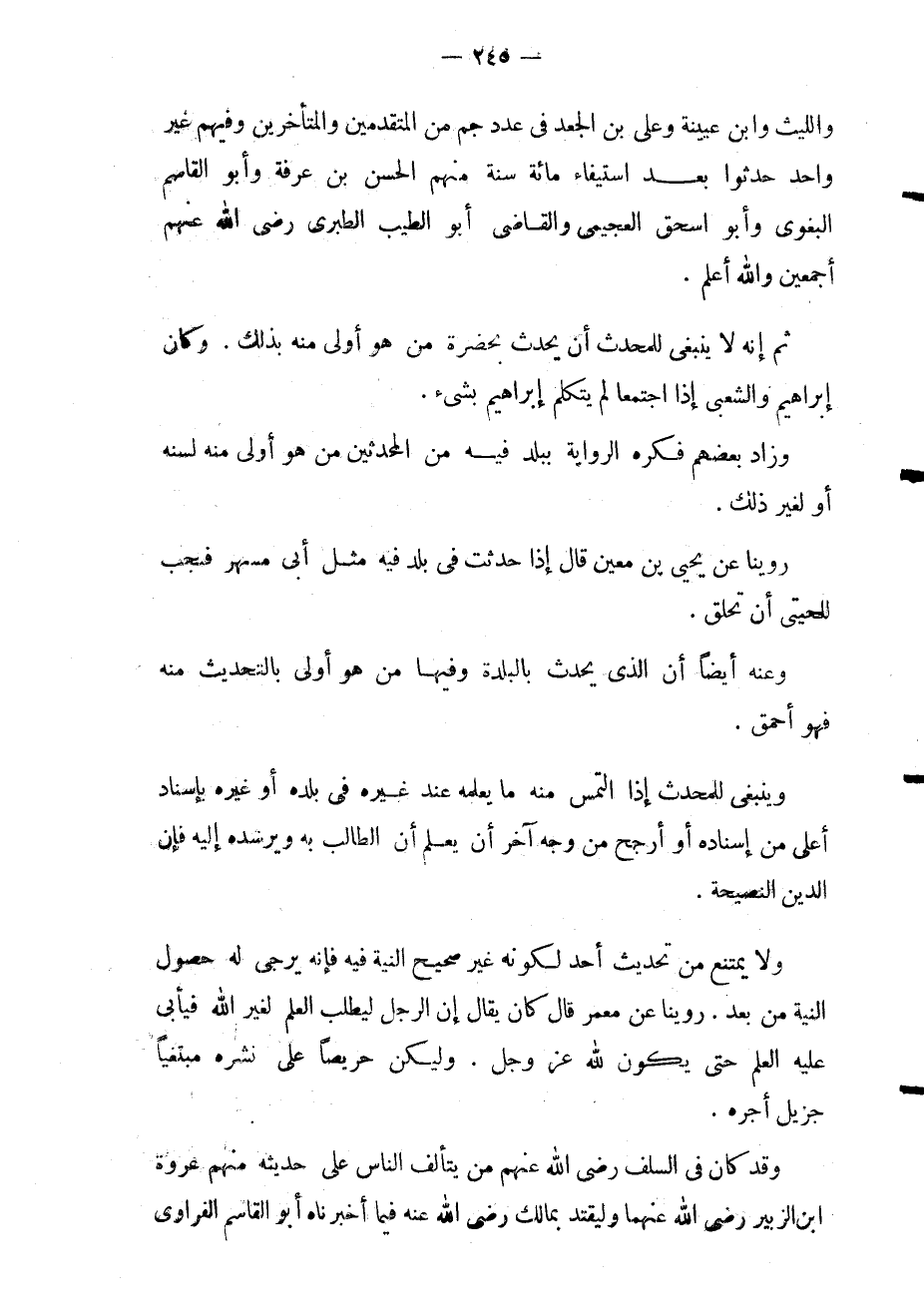 والليث وابن عيينة وعلي بن الجعد في عدد جم من المتقدمين والمتأخرين. وفيهم غير واحد حدثوا بعد استيفاء مائة سنة منهم: الحسن بن عرفة وأبو القاسم البغوي وأبو إسحاق العجيمي والقاضي أبو الطيب الطبري رضي الله عنهم أجمعين والله أعلم.