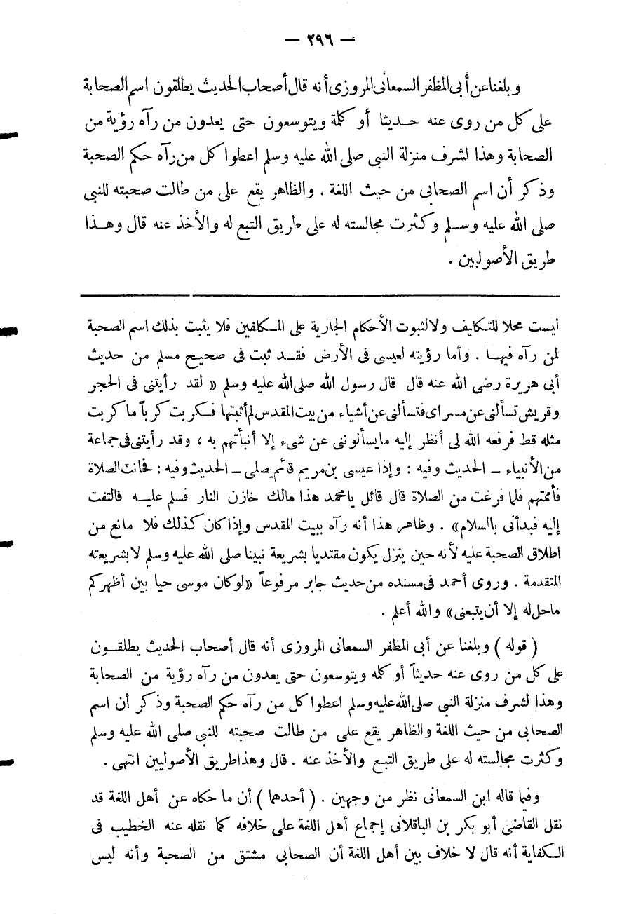 وفيما قاله ابن السمعانى نظر من وجهين أحدهما أن ما حكاه عن أهل اللغة قد نقل القاضي أبو بكر بن الباقلاني إجماع أهل اللغة على خلافه كما نقله عنه الخطيب في الكفاية أنه قال لا خلاف بين أهل اللغة أن الصح أبي مشتق من الصحبة وأنه ليس