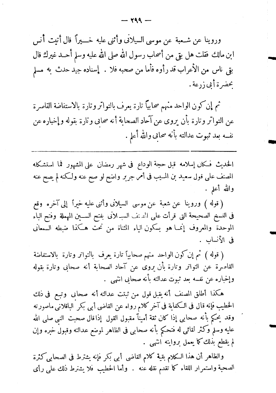 "قوله" وروينا عن شعبة عن موسى السبلاني وأثنى عليه خيرا إلى آخره وقع في النسخ الصحيحة التي قرأت على المصنف السيلانى بفتح السين المهملة وفتح الباء الموحدة والمعروف إنما هو بسكون الياء المثناة من تحت هكذا ضبطه السمعانى في الأنساب.
