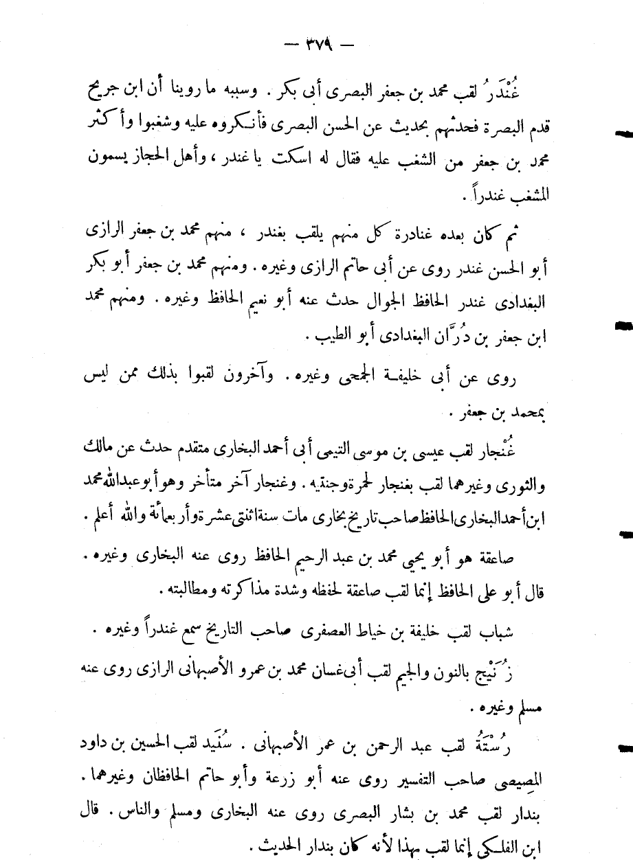 ثم كان بعده غنادرة كل منهم يلقب بغندر منهم: محمد بن جعفر الرازي أبو الحسين غندر روى عن أبي حاتم الرازي وغيره. ومنهم: محمد بن جعفر أبو بكر البغدادي غندر الحافظ الجوال حدث عنه أبو نعيم الحافظ وغيره. ومنهم: محمد بن جعفر بن دران البغدادي أبو الطيب.