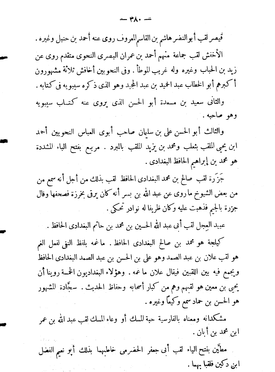 والثالث: أبو الحسن علي بن سليمان صاحب أبوي العباس النحويين: أحمد بن يحيى الملقب بثعلب ومحمد بن يزيد الملقب بالمبرد مربع بفتح الباء المشددة هو محمد بن إبراهيم الحافظ البغدادي.