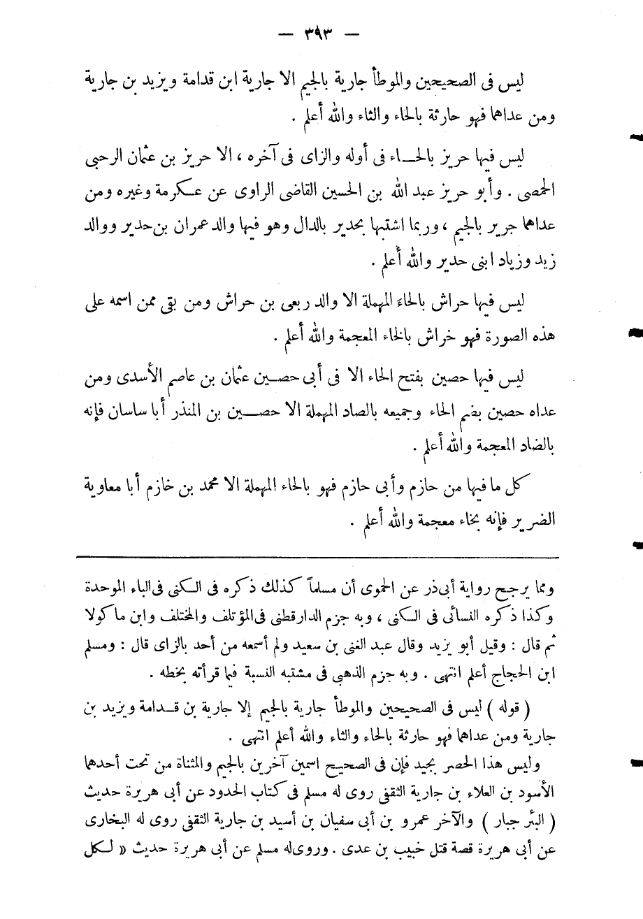 ليس فيها حريز بالحاء في أوله والزاي في آخره إلا حريز بن عثمان الرحبي الحمصي وأبو حريز عبد الله بن الحسين القاضي الراوي عن عكرمة وغيره. ومن عداهما: جرير بالجيم. وربما اشتبها بحدير بالدال وهو فيها والد عمران بن حدير ووالد زيد وزياد ابني جدير والله أعلم.