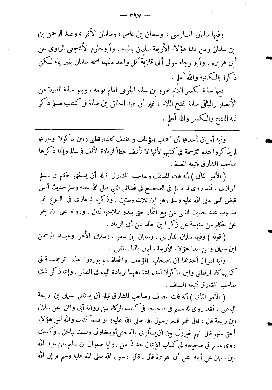 وفيه أمران: أحدهما: أن أصحاب المؤتلف والمختلف كالدارقطنى وابن ماكولا وغيرهما لم يذكروا هذه الترجمة في كتبهم لأنها لا تأتلف خطا لزيادة الألف في سالم وإنما ذكرها صاحب المشارق فتبعه المصنف.