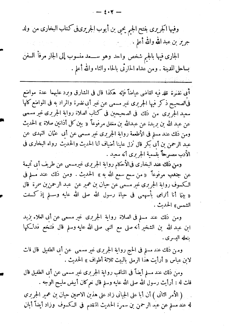 وفيها الجريري بفتح الجيم يحيى بن أيوب الجريري في كتاب البخاري من ولد جرير بن عبد الله والله أعلم.