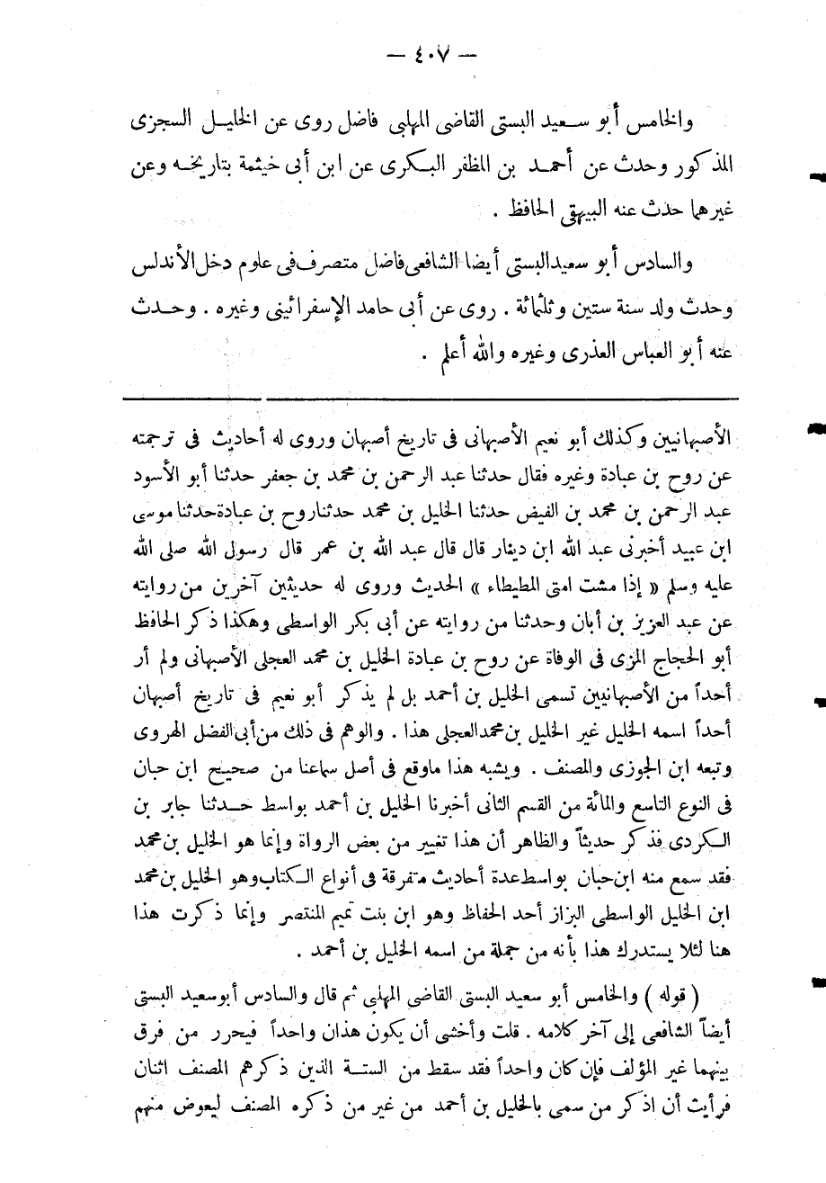 "قوله" والخامس أبو سعيد البستى القاضى المهلبى ثم قال والسادس أبو سعيد البستى أيضا الشافعى إلى آخر كلامه قلت وأخشى أن يكون هذان واحدا فيحرر من فرق بينهما غير المؤلف فإن كان واحدا فقد سقط من الستة الذين ذكرهم المصنف اثنان فرأيت أن اذكر من سمى بالخليل بن أحمد من غير من ذكره المصنف ليعوض منهم