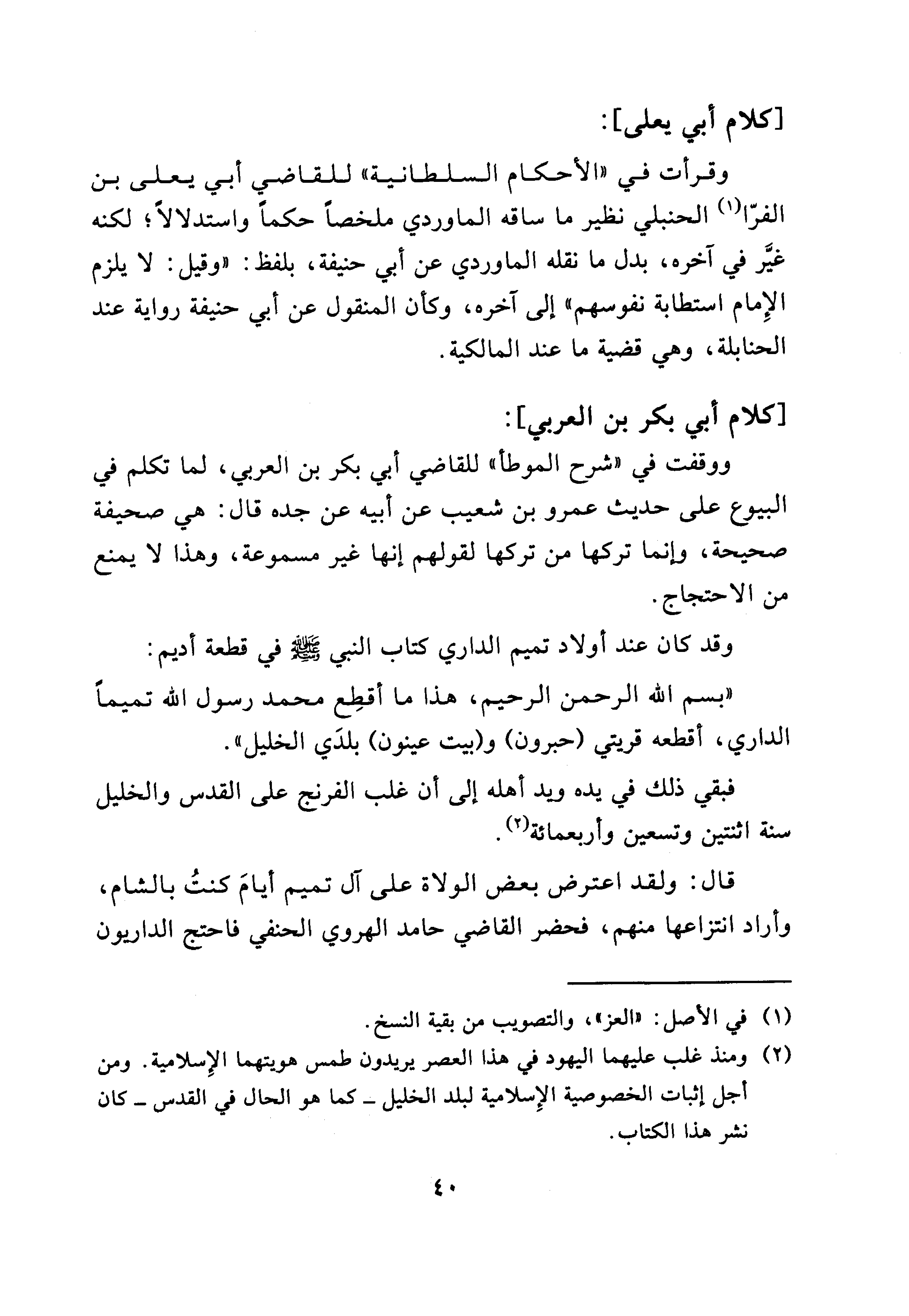 قال: ولقد اعترض بعض الولاة على آل تميم أيام كنت بالشام، وأراد انتزاعها منهم، فحضر القاضي حامد الهروي الحنفي فاحتج الداريون