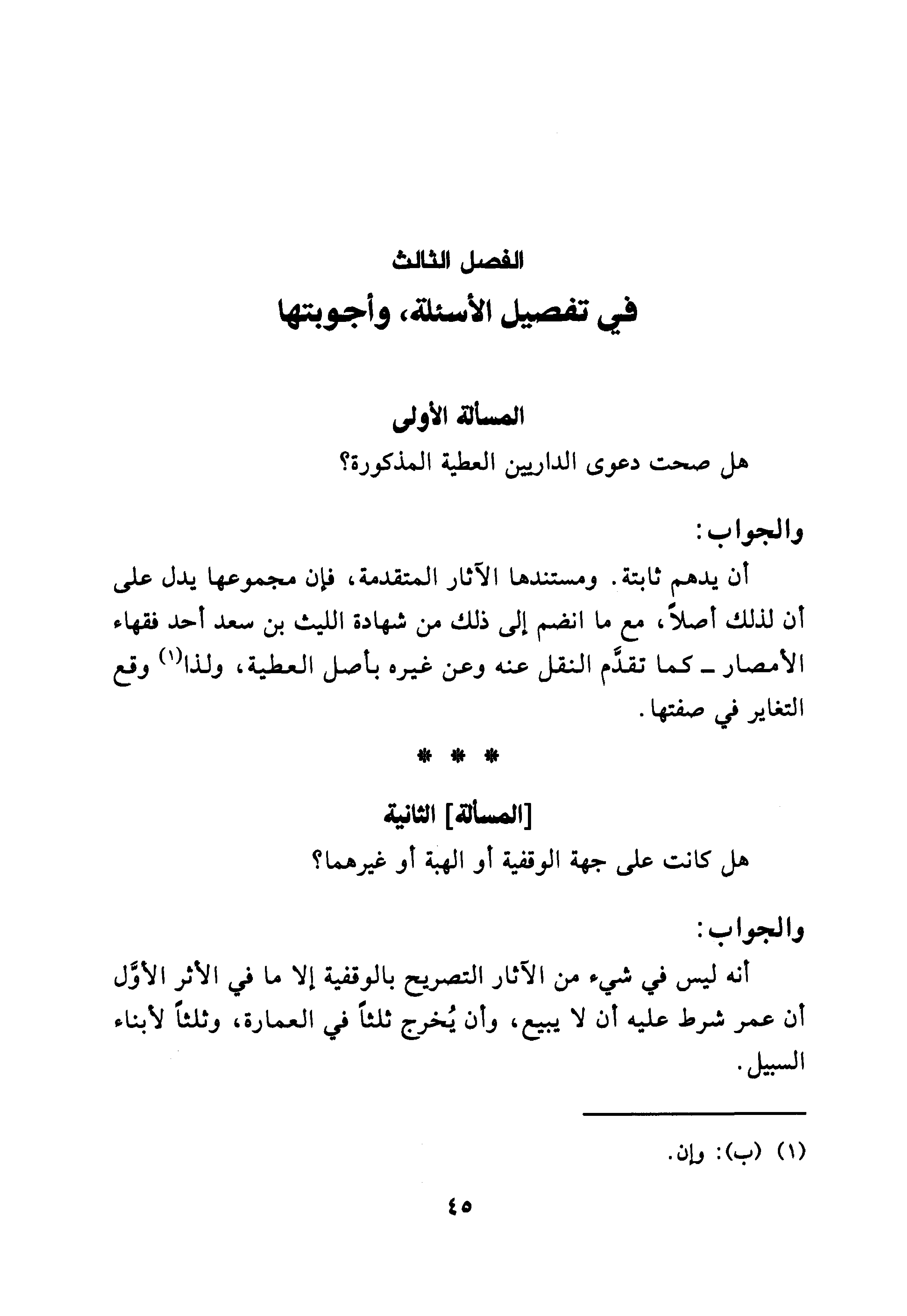 الفصل الثالث في تفصيل الأسئلة، وأجوبتها