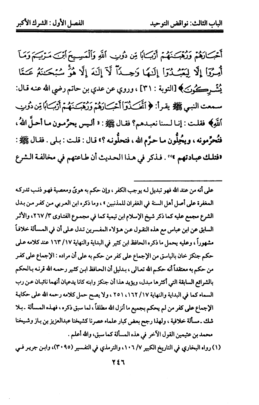 "1" ينظر كلام الشيخ عبد الله بن عبد الرحمن أبابطين الذي سبق نقله قريباً، وكلام شيخنا الشيخ محمد بن عثيمين الذي سبق نقله عند الكلام على شروط الحكم على المعين بالكفر.