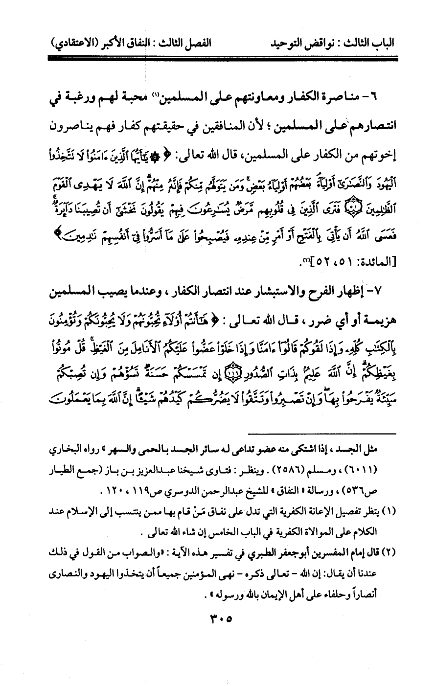 "2" قال في القول المفيد، باب من تبرك بشجرة أو حجر 1/205 عند شرحه لحديث أبي واقد السابق:"فهؤلاء طلبوا سدرة يتبركون بها كما يتبرك المشركون بها، وأولئك طلبوا إلهاً كما لهم آلهة، فيكون في كلا الطلبين منافاة للتوحيد؛ لأن التبرك بالشجر نوع من الشرك، واتخاذه إلهاً شرك واضح".