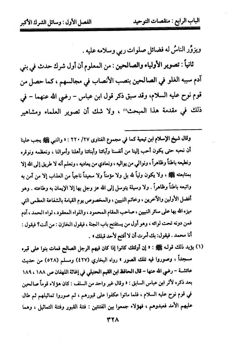 وقال الحافظ ابن رجب الحنبلي في فتح الباري 2/442 بعد ذكره رواية لحديث عائشة في لعن من اتخذ القبور مساجد، وفي آخرها زيادة:"يحرم ذلك على أمته"قال:"وقد اتفق أئمة الإسلام على هذا المعنى". وينظر التعليق الآتي عند ذكر حكاية الإجماع على أن الذهاب إلى القبور للتعبّد لله عندها من البدع.