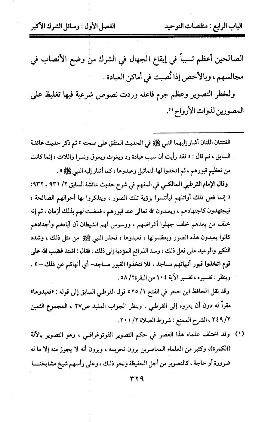"المساجد المبنية على القبور فإن حكم الإسلام فيها أن تهدم كلها حتى تسوى بالأرض، وكذا القباب التي بنيت على القبور يجب هدمها؛ لأنها أسست على معصية الرسول صلى الله عليه وسلم ومخالفته، وكل بناء أسس على معصية الرسول صلى الله عليه وسلم ومخالفته فهو بالهدم أولى من مسجد الضرار؛ لأنه عليه الصلاة والسلام نهى عن البناء على القبور، ولعن المتخذين عليها مساجد، فيجب المبادرة والمسارعة إلى هدم ما نهى عنه رسول الله صلى الله عليه وسلم ولعن فاعله".