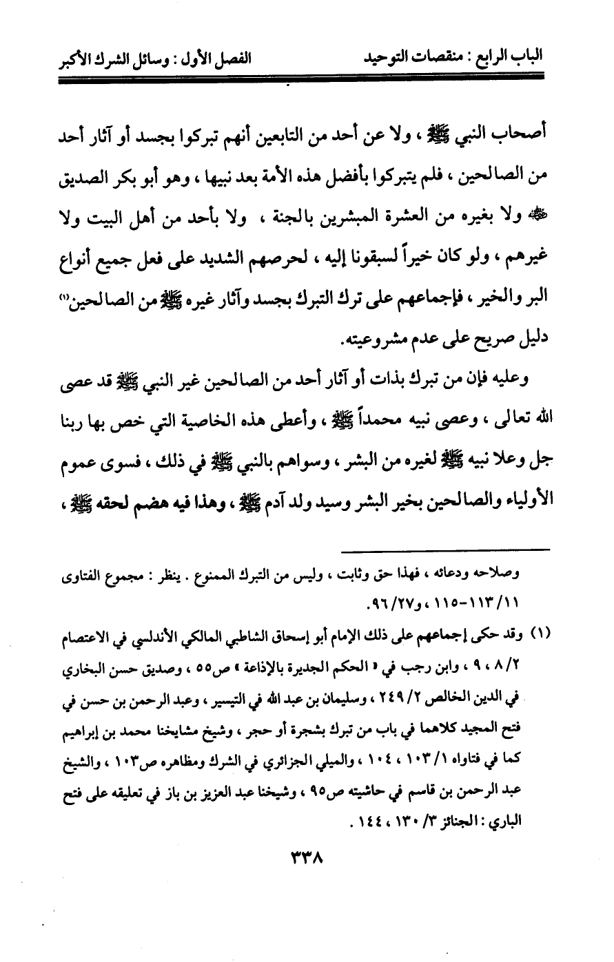وقال علامة العراق محمود الألوسي البغدادي الحنفي في تفسيره "روح المعاني"في تفسير الآية "21" من سورة الكهف 8/225-228:"استُدل بالآية على جواز البناء على قبور الصلحاء، واتخاذ مسجد عليها، وجواز الصلاة في ذلك، وممن ذكر ذلك الشهاب الخفاجي في حواشيه على البيضاوي، وهو قول باطل عاطل فاسد كاسد"ثم ذكر الأحاديث التي فيها النهي عن هذه الأمور، وأقوال بعض العلماء في تحريمها وكونها من كبائر الذنوب، وقولهم بوجوب هدم ما بني على القبور، ثم ذكر عدم صحة الاستدلال بهذه الآية على بناء المساجد على القبور، ثم قال:"وبالجملة لا ينبغي لمن له أدنى رشد أن يذهب إلى خلاف ما نطقت به الأخبار الصحيحة، والآثار الصريحة معولاً على الاستدلال بهذه الآية، فإن ذلك في الغواية غاية، وفي قلة النُّهى نهاية، ولقد رأيت من يبيح ما يفعله الجهلة في قبور الصالحين من إشرافها وبنائها بالجص والآجر، وتعليق القناديل عليها، والصلاة إليها، والطواف بها، واستلامها والاجتماع عندها في أوقات مخصوصة، إلى غير ذلك محتجاً بهذه الآية الكريمة، وبما جاء في بعض روايات القصة من جعل الملك لهم في كل سنة عيداً، وجعله إياهم في توابيت من ساج ومقيساً البعض على البعض، وكل ذلك محادة لله تعالى ورسوله صلى الله عليه وسلم، وإبتداع دين لم