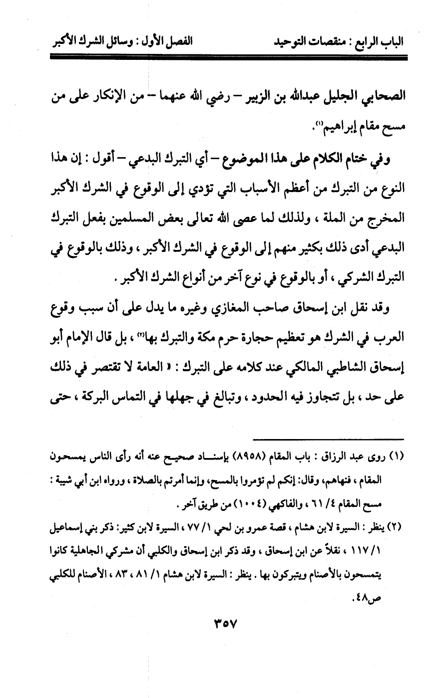 تعلمه من العلم بعد ذلك، بل يذهل عن كل حجة شرعية تدل على أن هذا هو الشرك بعينه، وإذا سمع من يقول ذلك أنكره، ونبا عنه سمعه، وضاق به ذرعه، لأنه يبعد كل البعد أن ينقل ذهنه دفعة واحدة في وقت واحد عن شيء يعتقده من أعظم الطاعات، إلى كونه من أقبح المقبحات، وأكبر المحرمات، مع كونه قد درج عليه الأسلاف، ودبّ فيه الأخلاف، وتعاودته العصور، وتناوبه الدهور، وهكذا كل شيء يقلد الناس فيه أسلافهم، ويحكمون العادات المستمرة. وبهذه الذريعة الشيطانية، والوسيلة الطاغوتية، بقي المشرك من الجاهلية على شركه، واليهودي على يهوديته، والنصراني على نصرانيته، والمبتدع على بدعته، وصار المعروف منكراً والمنكر معروفاً، وتبدلت الأمة بكثير من المسائل الشرعية غيرها، وألفوا ذلك، ومرنت عليه نفوسهم، وقبلته قلوبهم، وأنسوا إليه حتى لو أراد من يتصدى للإرشاد أن يحملهم على المسائل الشرعية البيضاء النقية التي تبدلوا لها غيرها لنفروا عن ذلك، ولم تقبله طبائعهم، ونالوا ذلك المرشد بكل مكروه، ومزّقوا عرضه بكل لسان". انتهى كلامه رحمه الله.