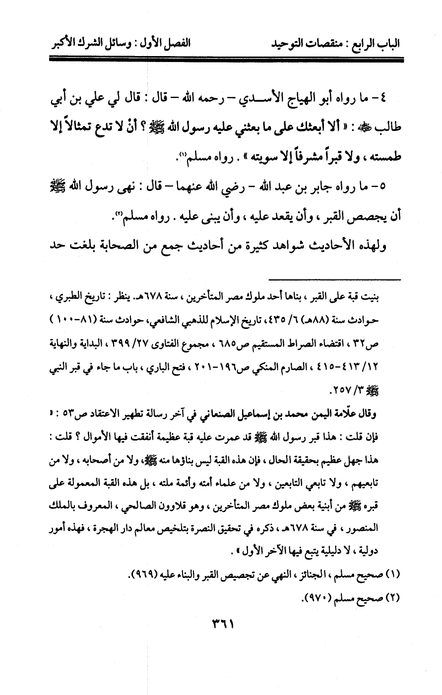 "1" ويمكن أن يقال: هو كل قول أو عمل بالقلب أو الجوارح جعل العبد فيه نداً لله تعالى، ولم تصل هذه الندية إلى إخراج صاحبها من الملة. وهذا التعريف أسلم من جهة عدم استعمال لفظ المعرف في التعريف، ولكن الأول أوضح. أما تعريفه بأنه: "كل ما ورد تسميته شركاً ولم يصل إلى درجة الشرك الأكبر". فهو غير جامع، وكذلك تعريفه بأنه "كل ما يؤي إلى الشرك"غير مانع، لأنه يدخل فيه كثير من البدع والمعاصي التي ليست من الشرك الأصغر، كالتصوير لغير التعظيم، فهو وسيلة للشرك، ولكن ليس فيه نوع إشراك حتى يكون شركاً، ومثله التساهل بالصلاة عند القبر من غير تعظيم له ولا قصد للصلاة عنده، وغير ذلك مما ليس فيه عند فعله نوع إشراك من الفاعل له فلا يدخل في الشرك الأصغر؛ لأنه ليس فيه إشراك أصلاً. وينظر المفردات ص425، القول السديد باب الخوف من الشرك، وباب الذبح ص34، 59،