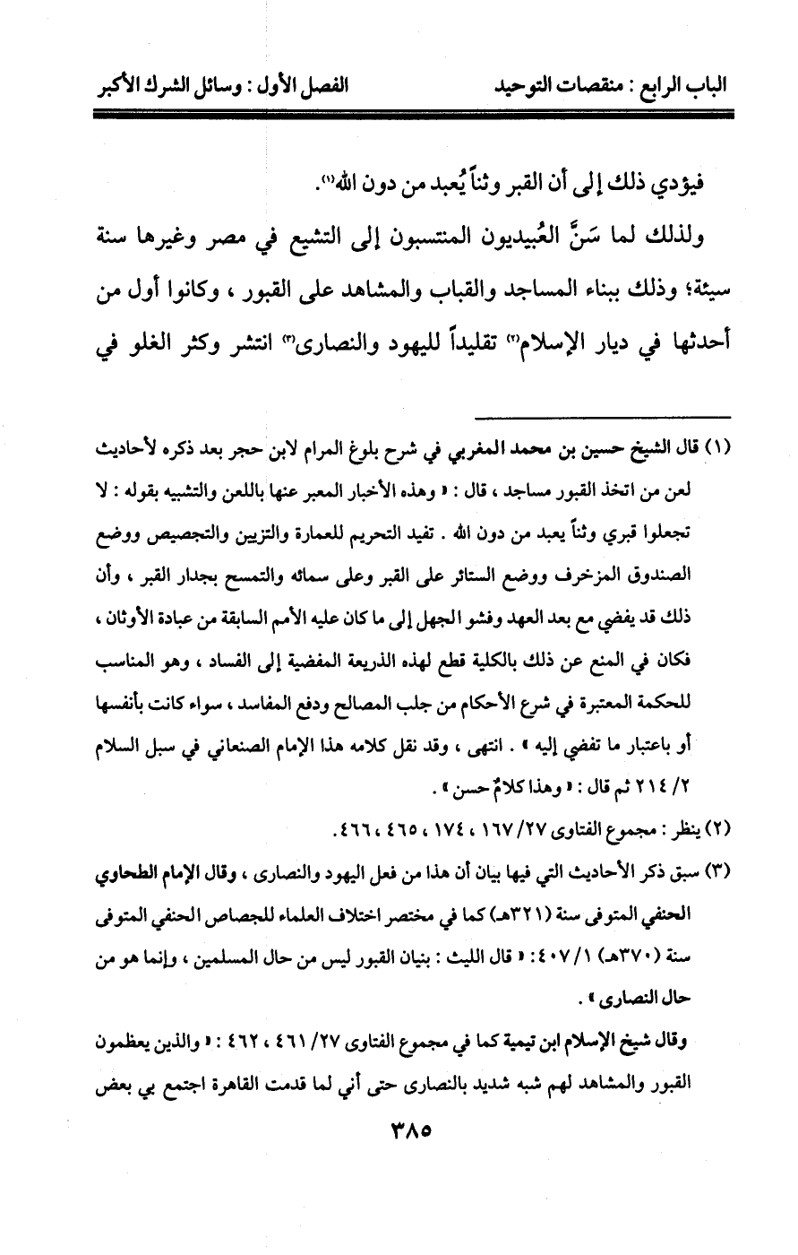 "1" لطائف المعارف: وظيفة شهر صفر ص70، التيسير، وقرة عيون الموحدين، وإبطال التنديد، وفتح الله الحميد باب "وعلى الله فتوكلوا"، القول السديد باب لبس الحلقة ص45، 46، القول المفيد باب الرقى 1/183، وينظر: مجموع الفتاوى 8/169، شرح الطيبي: الطب 8/320، آخر مدارج السالكين 3/521، آخر مفتاح دار السعادة 2/712، فيض القدير: شرح حديث "الطيرة شرك"4/294، مرقاة المفاتيح 4/523. وينظر ما سيأتي عند الكلام على الرقى المحرمة، وعند الكلام على التمائم المحرمة عند بيان وجه كونهما من الشرك – إن شاء الله تعالى -.