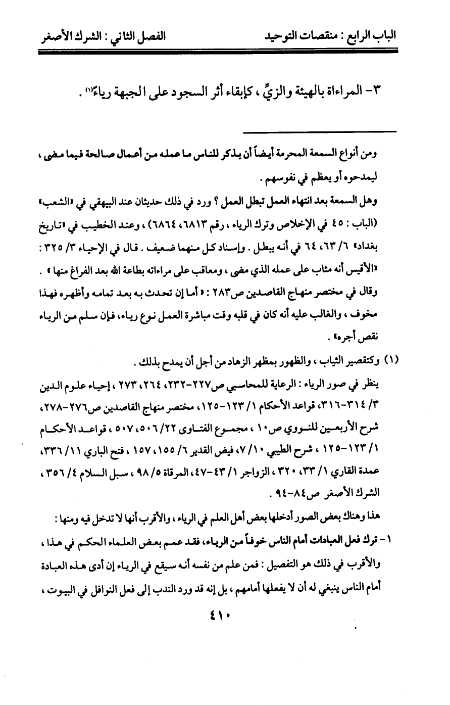 "1" وقريب من ذلك لبس المعضد للعلاج، وقد أطال شيخنا عبد العزيز بن باز الكلام على حكمه كما في مجموع فتاويه ومقالاته 1/206-210، وقد ذكر خلاف العلماء المعاصرين في حكمه، ثم قال: "ما عرف أنه من جنس الأسباب المحرمة فهو محرم، وإنْ قدر فيه بعض النفع، ومعلوم أن لبس المعضد يبقى على الإنسان كما تبقى الحروز والتمائم الأيام والليالي والسنوات، بخلاف الحبة التي يأكلها ويفرغ منها، وبخلاف الإبرة التي يستعملها وينتهي منها، فلبس المعضد من جنس هذه الأشياء، بل هو أشبه بلبس الحلقة التي ورد فيها حديث عمران بن حصين". انتهى كلامه مختصراً. وسيأتي حديث عمران قريباً إن شاء الله تعالى.