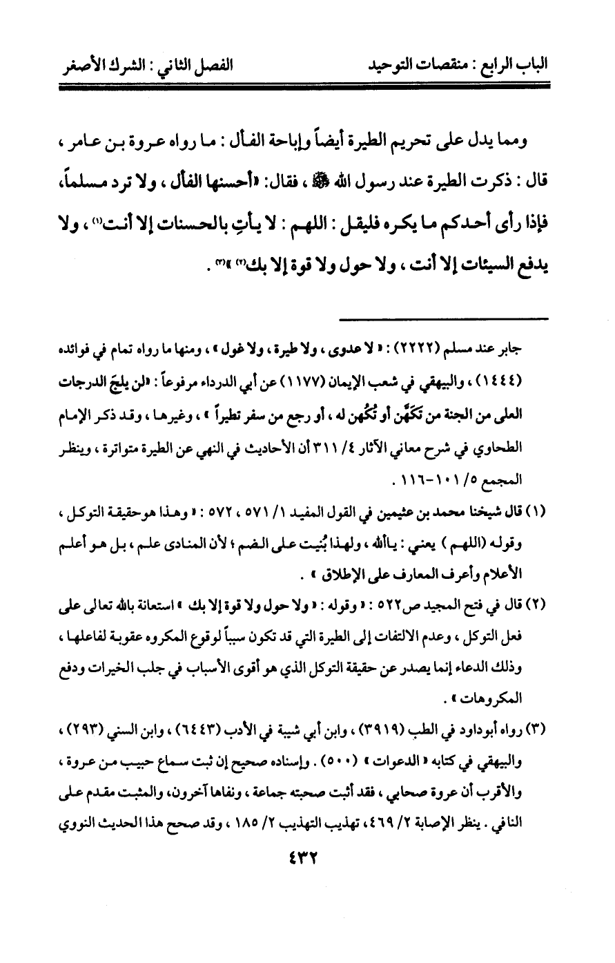 2- ما رواه البخاري ومسلم عن زيد بن خالد الجهني رضي الله عنه قال: صلّى بنا رسول الله صلى الله عليه وسلم صلاة الصبح بالحديبية في إثر سماء كانت من الليل"1"، فلما انصرف أقبل على الناس، فقال: " هل تدرون ماذا قال ربكم؟ "قالوا: الله ورسوله أعلم. قال: " أصبح من عبادي مؤمنٌ بي وكافر، فأما من قال: مطرنا بفضل الله ورحمته فذلك مؤمن بي كافر بالكوكب، وأما من قال: مُطرنا بنوء كذا وكذا، فذلك كافرٌ بي مؤمن بالكوكب " "2". وهذا الحديث يشمل على الصحيح النوعين السابقين، فهذا القول كفر، لكن إن نسب الغيث إلى النجم من دون الله فهو كفر وشرك أكبر، وإن نسبه إليه نسبة تسبب فهو كفر نعمة وشرك أصغر"3".