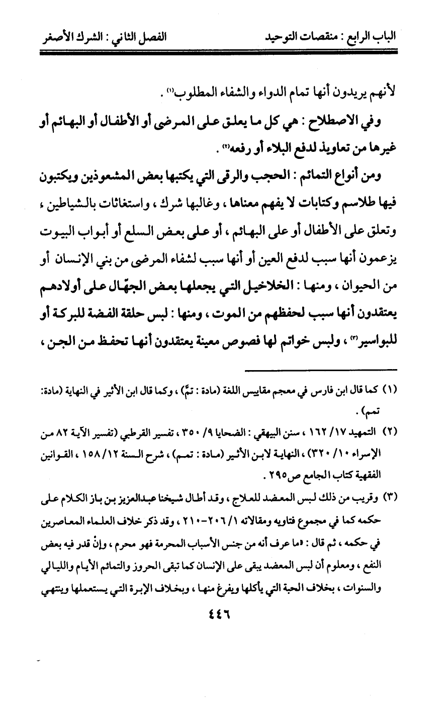البراءة ممن فعل بعض المعاصي، كحديث: " من غشنا فليس منا "، وبعض أحاديث الشرك الأصغر، وبعض أحاديث الكفر الأصغر، قال: "فهذه أربعة أنواع من الحديث، قد كان الناس فيها على أربعة أصناف من التأويل: فطائفة تذهب إلى كفر النعمة، وثانية تحملها على التغليظ والترهيب. وثالثة تجعلها كفر أهل الردة. ورابعة تذهبها كلها وتردها، فكل هذه الوجوه عندنا مردودة غير مقبولة، لما يدخلها من الخلل والفساد. والذي يرد المذهب الأول ما نعرفه من كلام العرب ولغاتها، وذلك أنهم لا يعرفون كفران النعم إلا بالجحد لإنعام الله وآلائه وهو كالمخبر عن نفسه بالعدم، وقد وهب الله له الثروة، أو بالسقم، وقد منَّ الله عليه بالسلامة. وكذلك ما يكون من كتمان المحاسن ونشر المصائب، فهذا الذي تسميه العرب كفراناً إن كان ذلك فيما بينها وبين الله، أو كان من بعضهم لبعض إذا تناكروا اصطناع المعروف عندهم وتجاحدوه. ينبئك عن ذلك مقالة النبي صلى الله عليه وسلم للنساء: " إنكن تكثرن اللعن وتكفرن العشير - يعني الزوج - وذلك أن تغضب إحداكن فتقول: ما رأيت منك خيراً قط "، فهذا ما في كفر النعمة"، وقال في العباب كما في عمدة القاري 1/200: "الكفر: نقيض الإيمان، والكفر أيضاً جحود النعمة، وهو ضد الشكر، وأصل الكفر التغطية، وقد كفرت الشيء أي سترته، وكل شيء غطى شيئاً فقد كفره، ومنه الكافر، لأنه يستر توحيد الله أو نعمة الله".