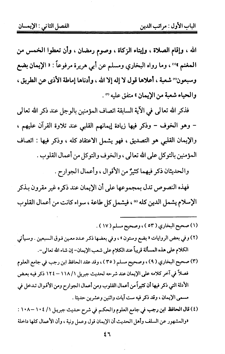 (2) شرح الطحاوية ص46، الوابل الصيب ص46، إغاثة اللهفان الباب السادس 1/30، تيسير العزيز الحميد ص17، معارج القبول 1/315، القول السديد ص19.
