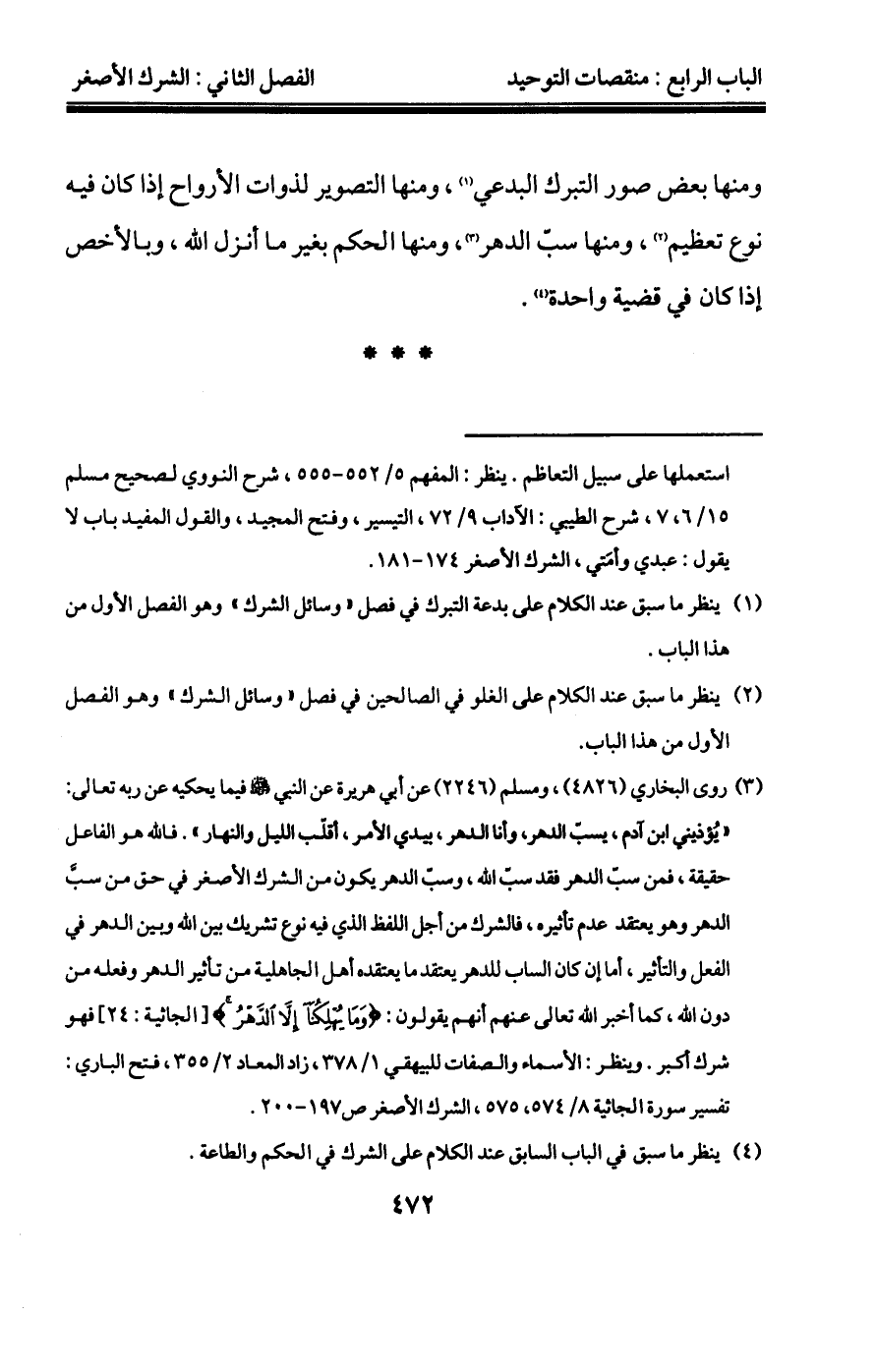 يكن في عهد النبي صلى الله عليه وسلم وأبي بكر وعمر شيء من الأهواء – يعني بدع الخوارج والروافض والقدرية – وقد توسع من تأخر عن القرون الثلاثة الفاضلة في غالب الأمور التي أنكرها أئمة التابعين وأتباعهم، ولم يقتنعوا بذلك حتى مزجوا مسائل الديانة بكلام اليونان، وجعلوا كلام الفلاسفة أصلاً يردون إليه ما خالفه من الآثار بالتأويل ولو كان مستكرهاً، ثم لم يكتفوا بذلك حتى زعموا أن الذي رتبوه هو أشرف العلوم وأولاها بالتحصيل، وأن من لم يستعمل ما اصطلحوا عليه فهو عامي جاهل، فالسعيد من تمسك بما كان عليه السلف واجتنب ما أحدثه الخلف، وإن لم يكن له منه بد فليكتف منه بقدر الحاجة، ويجعل الأول المقصود بالأصالة والله الموفق".
