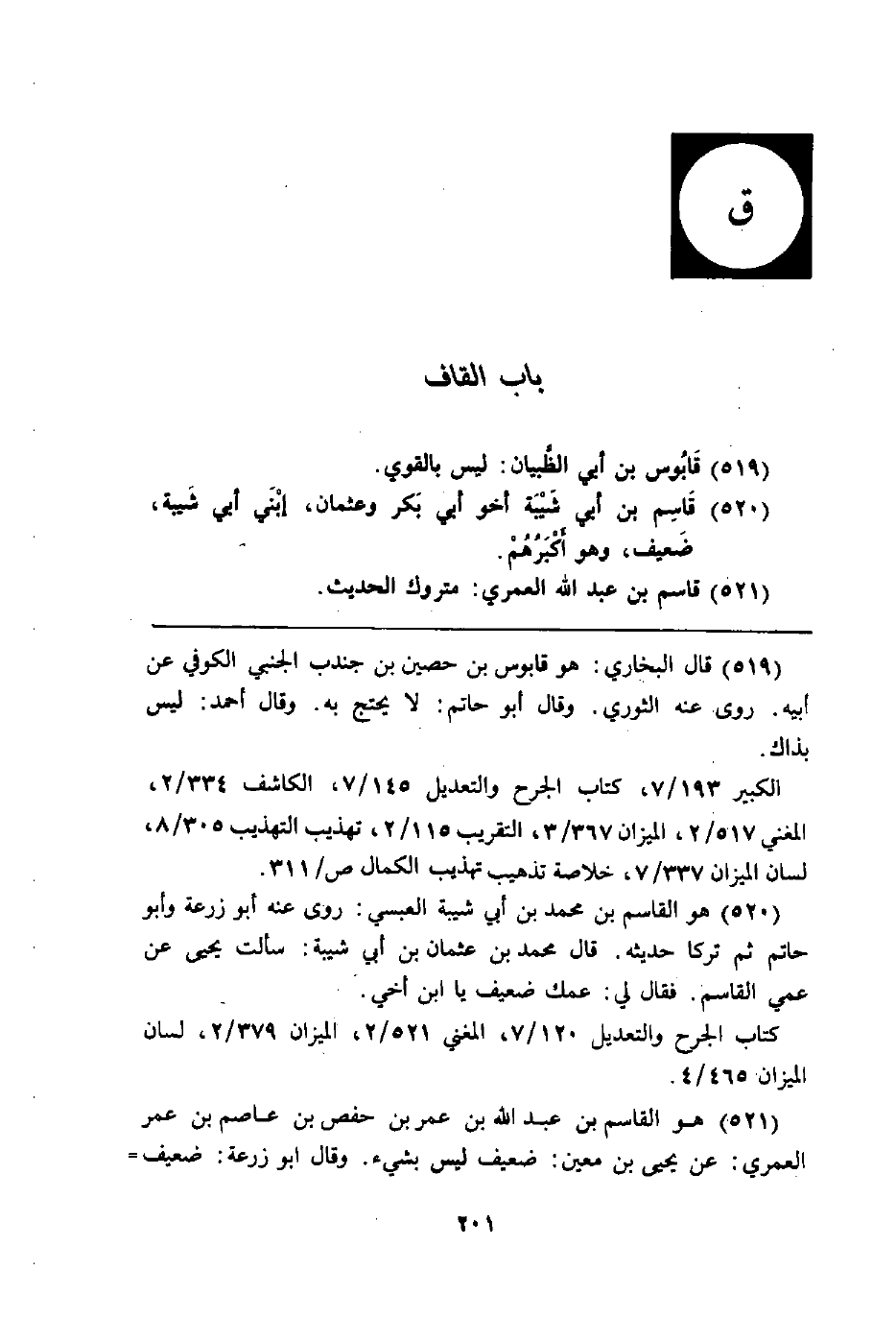 496 - قاسم بن أبي شيبة أخو أبي بكر وعثمان ابني أبي شيبة ضعيف وهو أكبرهم