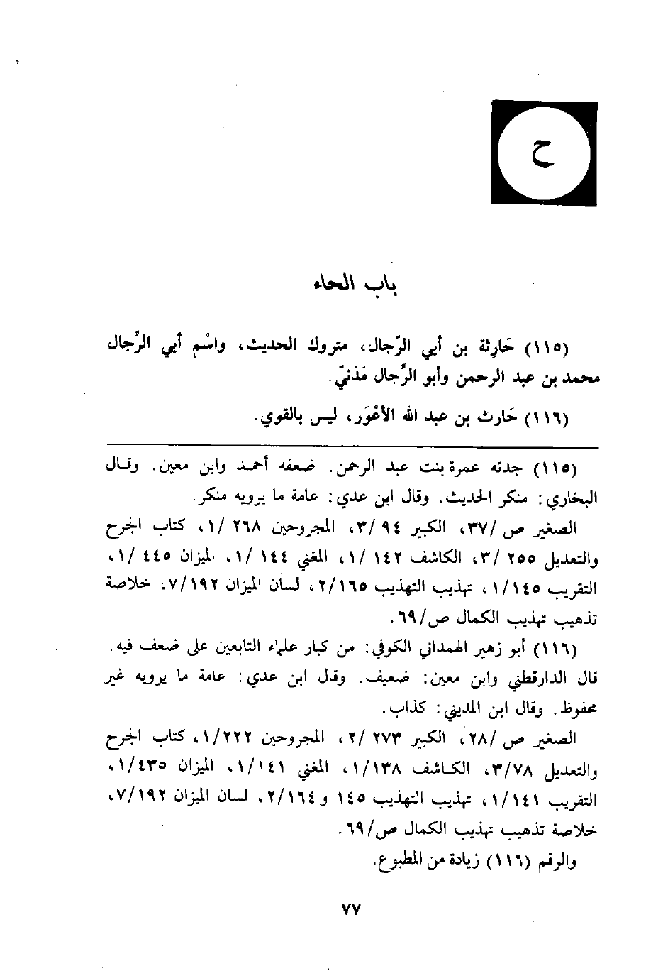 113 - حارثة بن أبي الرجال متروك الحديث واسم أبي الرجال محمد بن عبد الرحمن أبو الرجال مدني