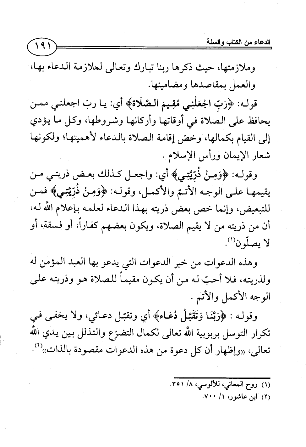 وهذه الدعوات من خير الدعوات التي يدعو بها العبد المؤمن له ولذريته، فلا أحبّ له من أن يكون مقيماً للصلاة هو وذريته على الوجه الأكمل والأتم.