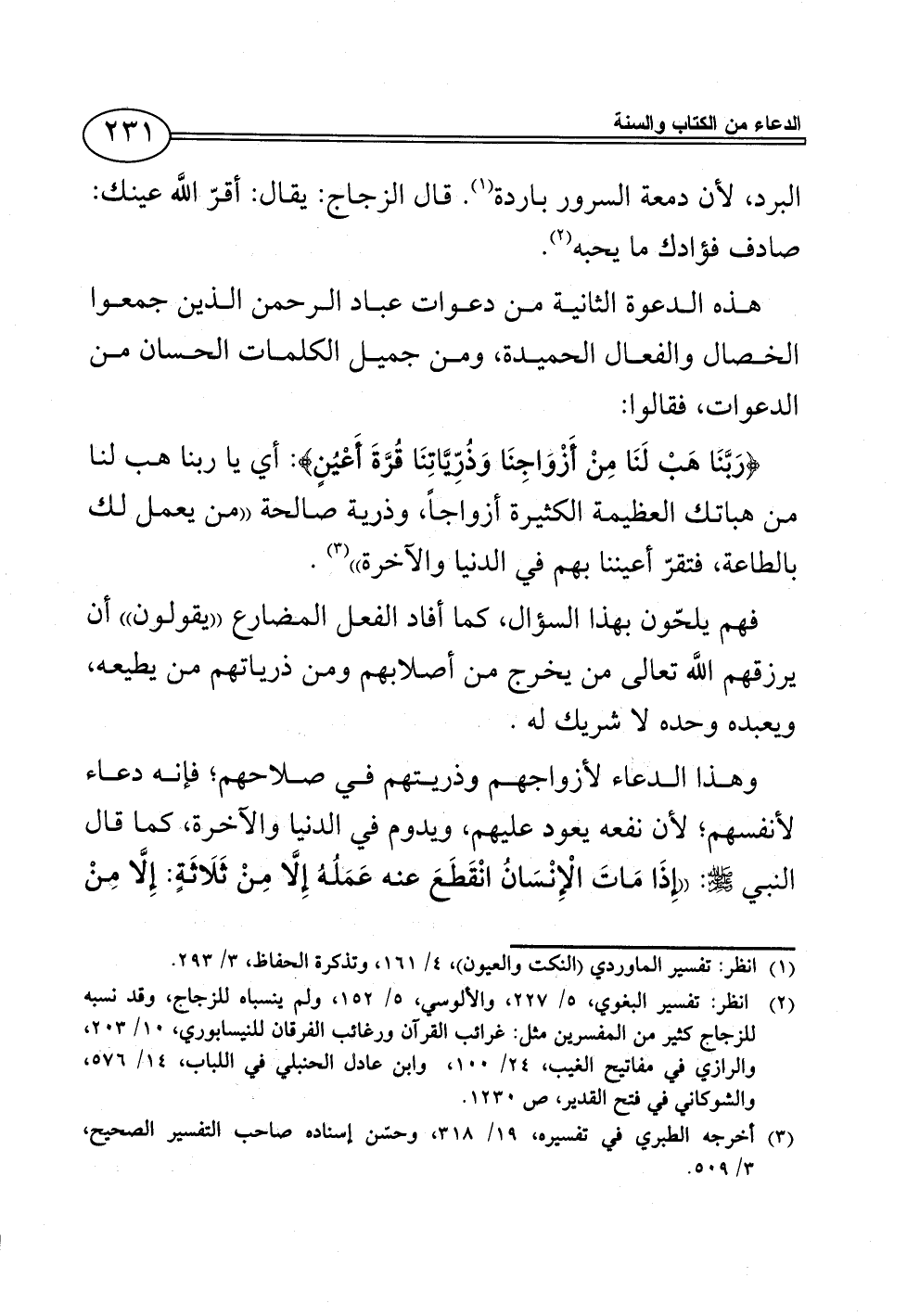 هذه الدعوة الثانية من دعوات عباد الرحمن الذين جمعوا الخصال والفعال الحميدة، ومن جميل الكلمات الحسان من الدعوات، فقالوا: