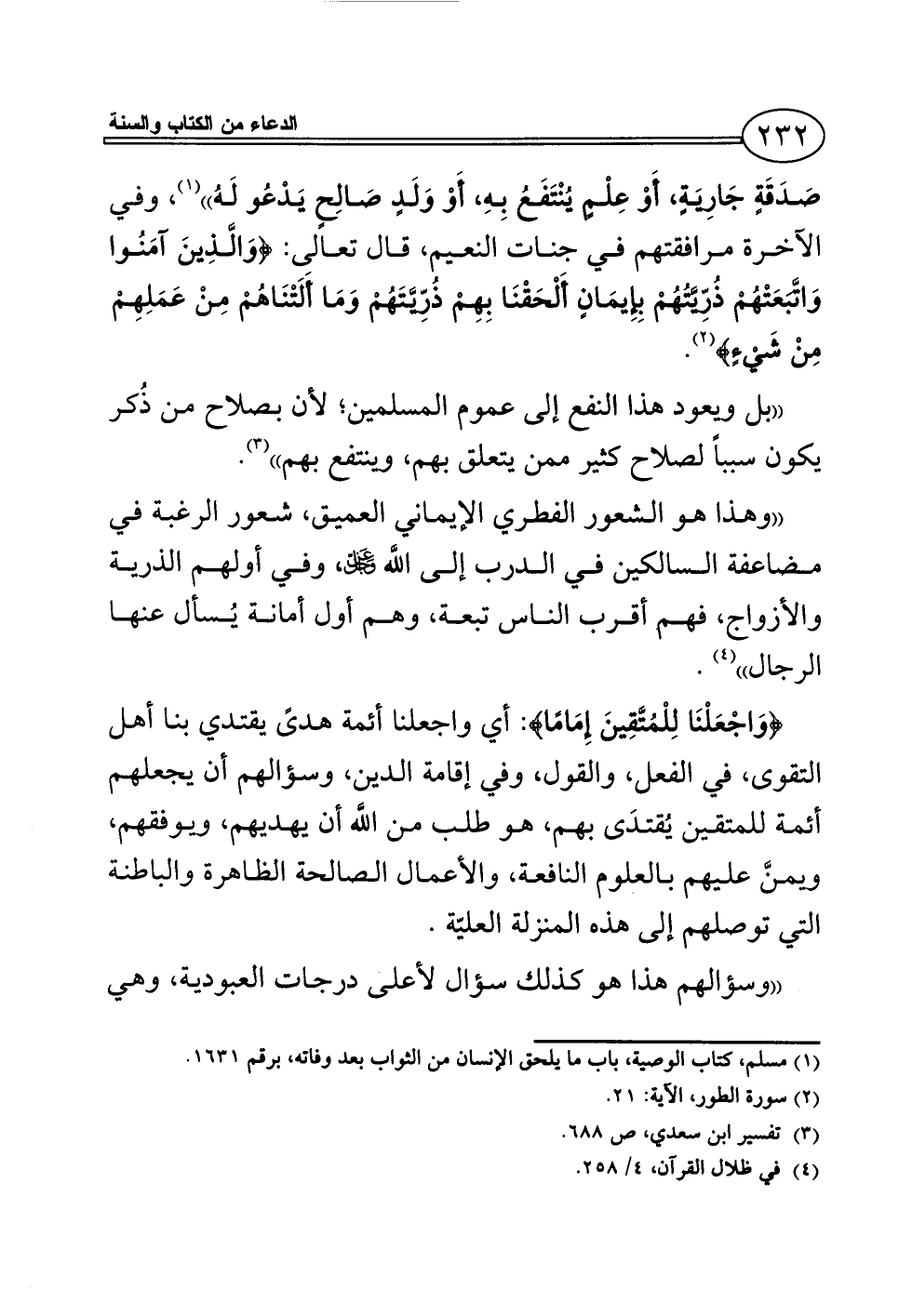 ((وهذا هو الشعور الفطري الإيماني العميق، شعور الرغبة في مضاعفة السالكين في الدرب إلى اللَّه - عز وجل -، وفي أولهم الذرية والأزواج، فهم أقرب الناس تبعة، وهم أول أمانة يُسأل عنها الرجال)) (¬4).
