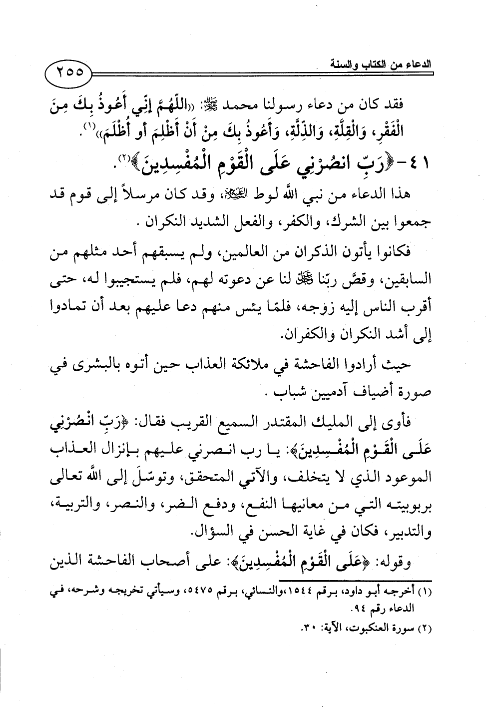 41 - {رَبِّ انصُرْنِي عَلَى الْقَوْمِ الْمُفْسِدِينَ} (¬2).
