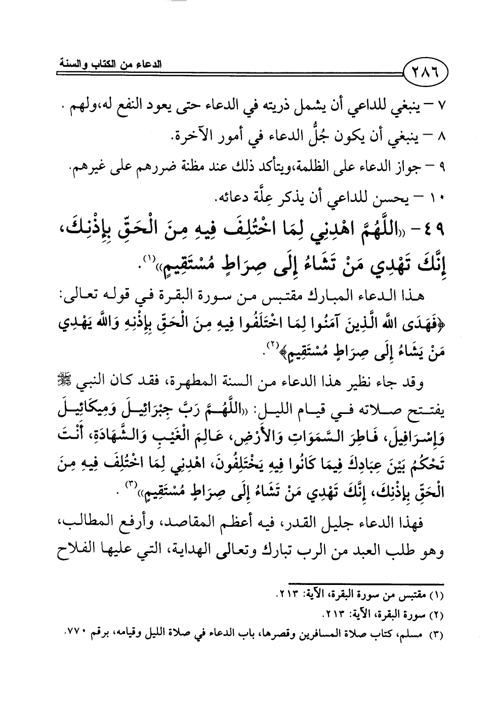 49 - ((اللَّهُمَّ اهْدِنِي لِمَا اخْتُلِفَ فِيهِ مِنَ الْحَقِّ بِإِذْنِكَ، إِنَّكَ تَهْدِي مَنْ تَشَاءُ إِلَى صِرَاطٍ مُسْتَقِيمٍ)) (¬1).