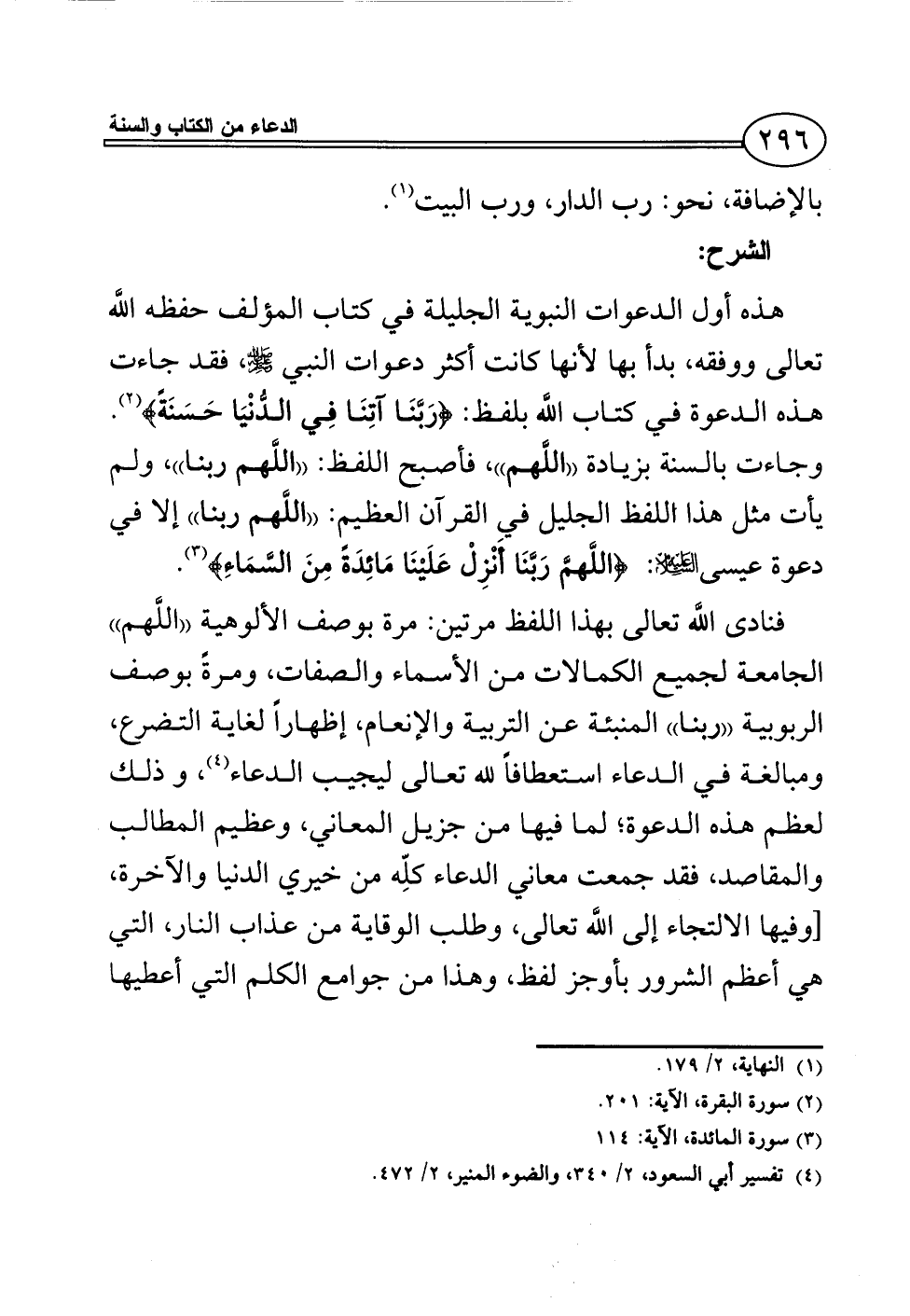 هذه أول الدعوات النبوية الجليلة في كتاب المؤلف حفظه اللَّه تعالى ووفقه، بدأ بها لأنها كانت أكثر دعوات النبي - صلى الله عليه وسلم -، فقد جاءت هذه الدعوة في كتاب اللَّه بلفظ: {رَبَّنَا آتِنَا فِي الدُّنْيَا حَسَنَةً} (¬2). وجاءت بالسنة بزيادة ((اللَّهم))، فأصبح اللفظ: ((اللَّهم ربنا))، ولم يأت مثل هذا اللفظ الجليل في القرآن العظيم: ((اللَّهم ربنا)) إلا في دعوة عيسى - عليه السلام -: {اللَّهمَّ رَبَّنَا أَنْزِلْ عَلَيْنَا مَائِدَةً مِنَ السَّمَاءِ} (¬3).