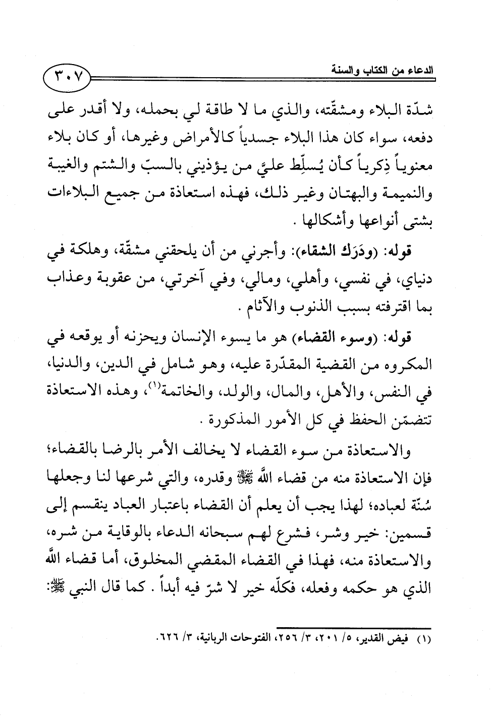 شدّة البلاء ومشقّته، والذي ما لا طاقة لي بحمله، ولا أقدر على دفعه، سواء كان هذا البلاء جسدياً كالأمراض وغيرها، أو كان بلاء معنوياً ذِكرياً كأن يُسلِّط عليَّ من يؤذيني بالسبّ والشتم والغيبة والنميمة والبهتان وغير ذلك، فهذه استعاذة من جميع البلاءات بشتى أنواعها وأشكالها.