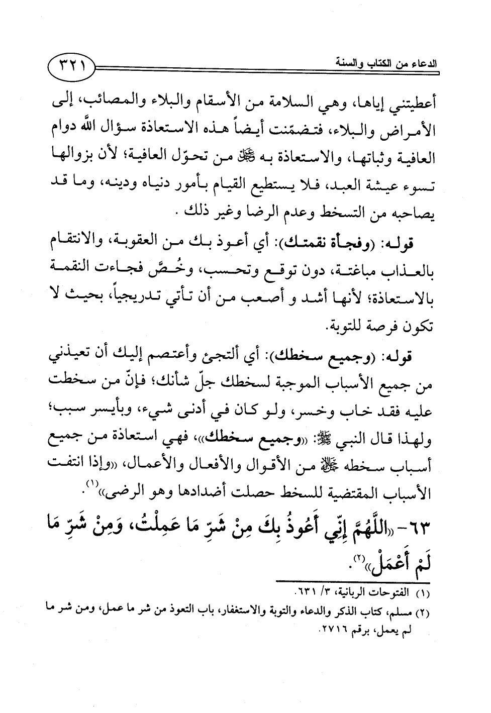 63 - ((اللَّهُمَّ إِنِّي أَعُوذُ بِكَ مِنْ شَرِّ مَا عَمِلْتُ، وَمِنْ شَرِّ مَا لَمْ أَعْمَلْ)) (¬2).