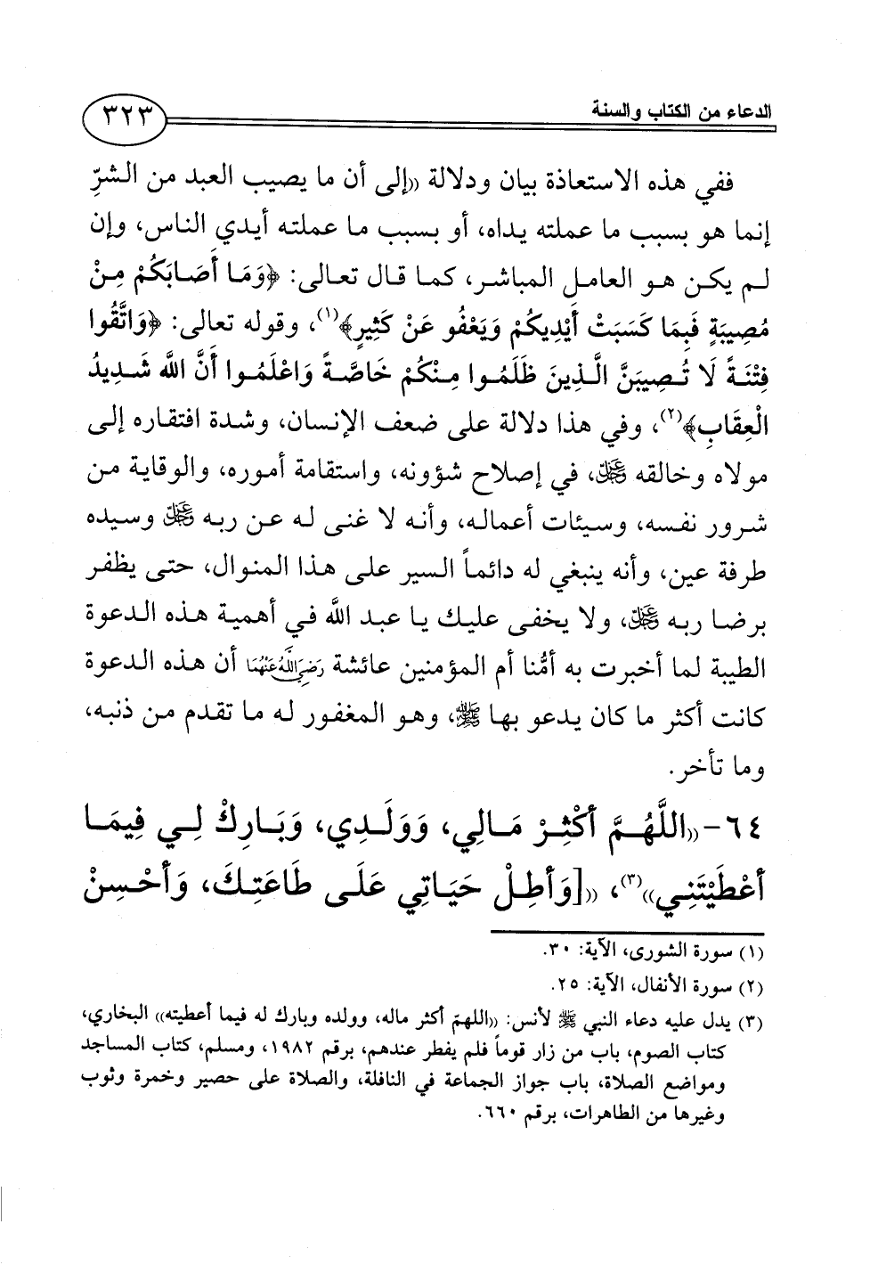 (¬3) يدل عليه دعاء النبي - صلى الله عليه وسلم - لأنس: ((اللهمّ أكثر ماله، وولده وبارك له فيما أعطيته)) البخاري، كتاب الصوم، باب من زار قوماً فلم يفطر عندهم، برقم 1982، ومسلم، كتاب المساجد ومواضع الصلاة، باب جواز الجماعة في النافلة، والصلاة على حصير وخمرة وثوب وغيرها من الطاهرات، برقم 660.
