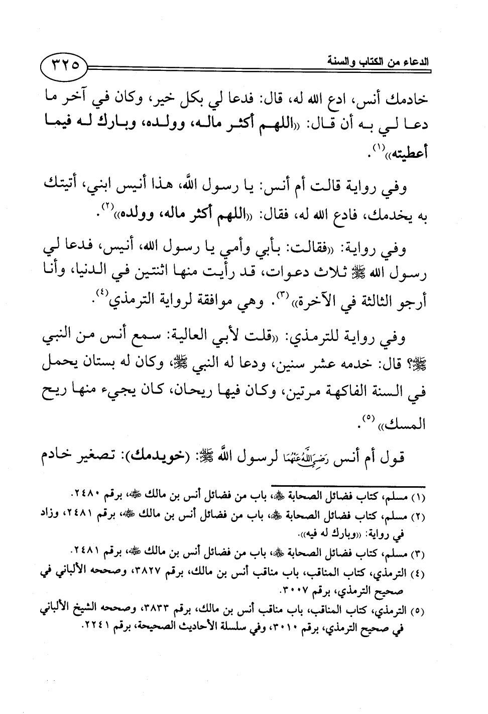 (¬5) الترمذي، كتاب المناقب، باب مناقب أنس بن مالك، برقم 3833، وصححه الشيخ الألباني في صحيح الترمذي، برقم 3010، وفي سلسلة الأحاديث الصحيحة، برقم 2241.