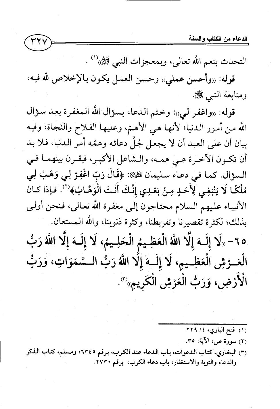 65 - ((لَا إِلَهَ إِلَّا اللَّهُ الْعَظِيمُ الْحَلِيمُ، لَا إِلَهَ إِلَّا اللَّهُ رَبُّ الْعَرْشِ الْعَظِيمِ، لَا إِلَهَ إِلَّا اللَّهُ رَبُّ السَّمَوَاتِ، وَرَبُّ الْأَرْضِ، وَرَبُّ الْعَرْشِ الْكَرِيمِ)) (¬3).