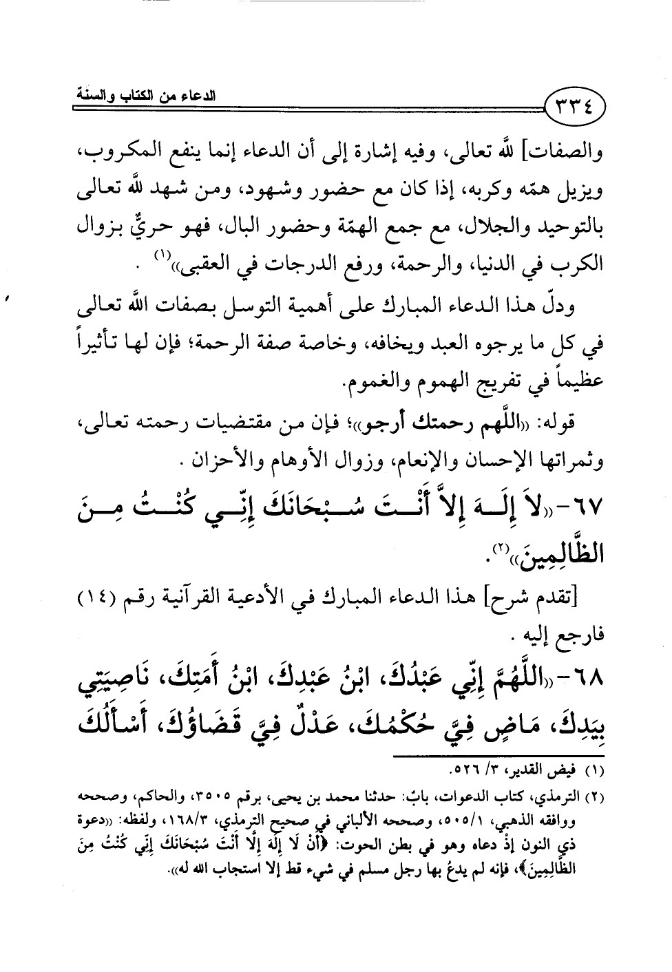 (¬2) الترمذي، كتاب الدعوات، بابٌ: حدثنا محمد بن يحيى، برقم 3505، والحاكم، وصححه ووافقه الذهبي، 1/ 505، وصححه الألباني في صحيح الترمذي، 3/ 168، ولفظه: ((دعوة ذي النون إذْ دعاه وهو في بطن الحوت: {أَنْ لَا إِلَهَ إِلَّا أَنْتَ سُبْحَانَكَ إِنِّي كُنْتُ مِنَ الظَّالِمِينَ}، فإنه لم يدعُ بها رجل مسلم في شيء قط إلا استجاب الله له)).