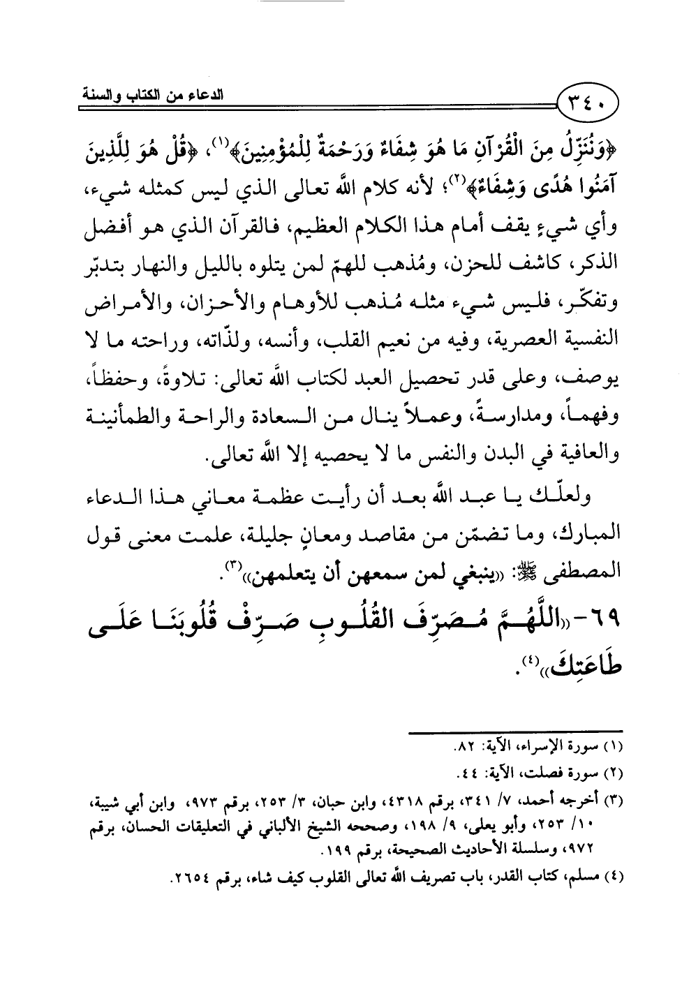 69 - ((اللَّهُمَّ مُصَرِّفَ القُلُوبِ صَرِّفْ قُلُوبَنَا عَلَى طَاعَتِكَ)) (¬4).