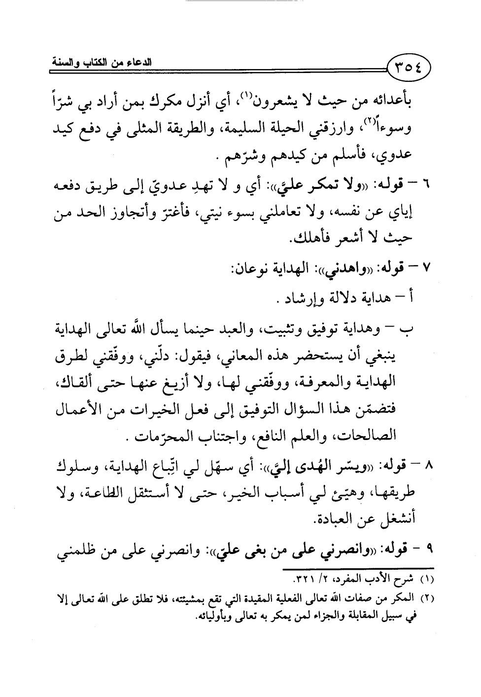6 - قوله: ((ولا تمكر عليَّ)): أي ولا تهدِ عدويّ إلى طريق دفعه إياي عن نفسه, ولا تعاملني بسوء نيتي، فأغترّ وأتجاوز الحد من حيث لا أشعر فأهلك.