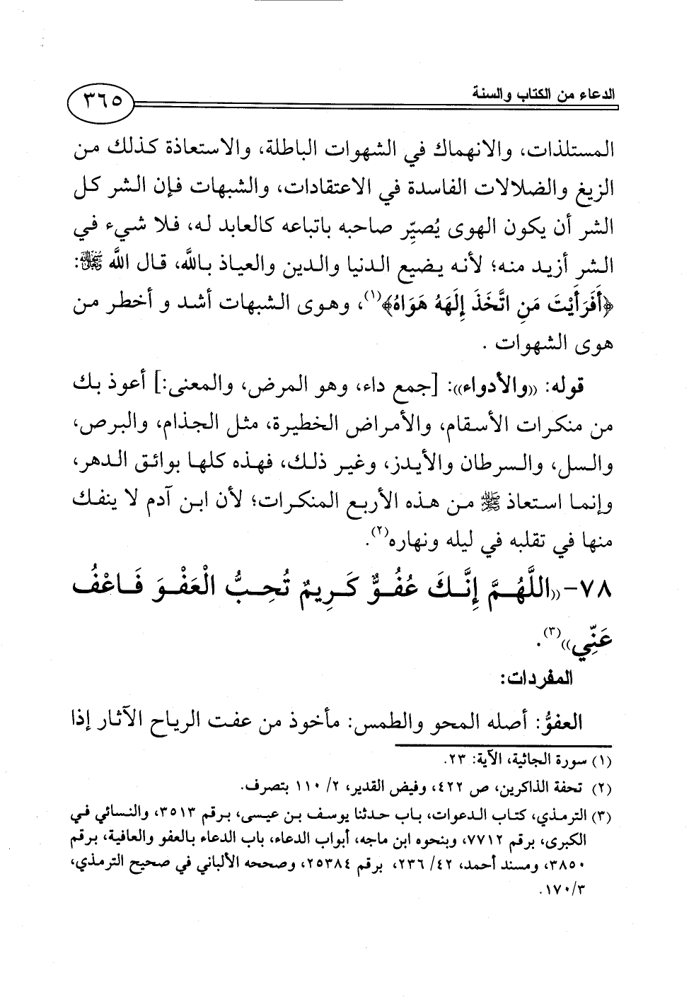 78 - ((اللَّهُمَّ إِنَّكَ عُفُوٌّ كَرِيمٌ تُحِبُّ الْعَفْوَ فَاعْفُ عَنِّي)) (¬3).