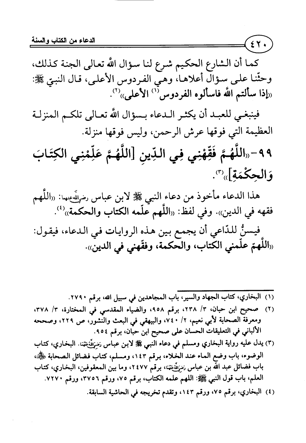 99 - ((اللَّهُمَّ فَقِّهْنِي فِي الدِّينِ [اللَّهُمَّ عَلِّمْنِي الكِتَابَ وَالحِكْمَةِ])) (¬3).