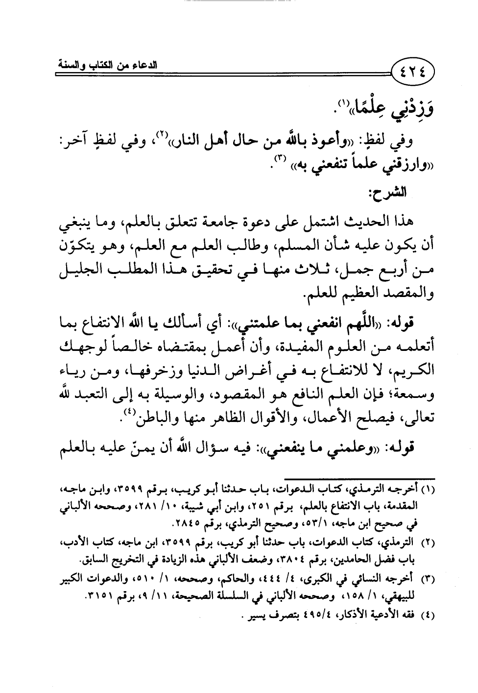 (¬1) أخرجه الترمذي، كتاب الدعوات، باب حدثنا أبو كريب، برقم 3599، وابن ماجه، المقدمة، باب الانتفاع بالعلم، برقم 251، وابن أبي شيبة، 10/ 281، وصححه الألباني في صحيح ابن ماجه، 1/ 53، وصحيح الترمذي، برقم 2845.