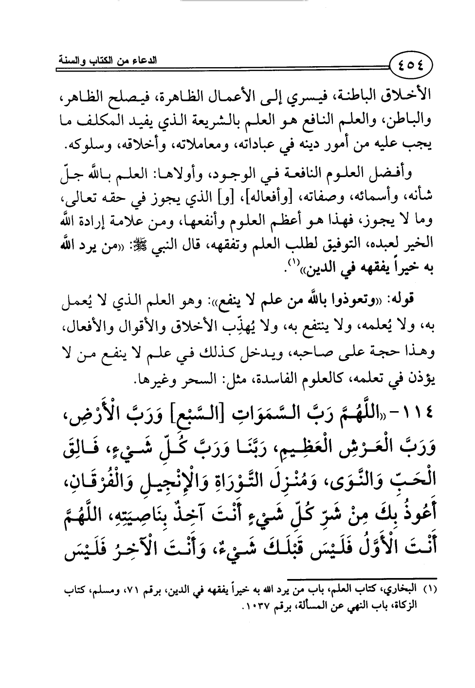 114 - ((اللَّهُمَّ رَبَّ السَّمَوَاتِ [السَّبْعِ] وَرَبَّ الْأَرْضِ، وَرَبَّ الْعَرْشِ الْعَظِيمِ، رَبَّنَا وَرَبَّ كُلِّ شَيْءٍ، فَالِقَ الْحَبِّ وَالنَّوَى، وَمُنْزِلَ التَّوْرَاةِ وَالْإِنْجِيلِ وَالْفُرْقَانِ،