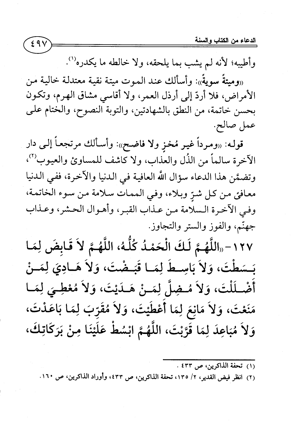 ((وميتةً سويةً)): وأسألك عند الموت ميتة نقية معتدلة خالية من الأمراض، فلا أردّ إلى أرذل العمر، ولا أقاسي مشاق الهرم, وتكون