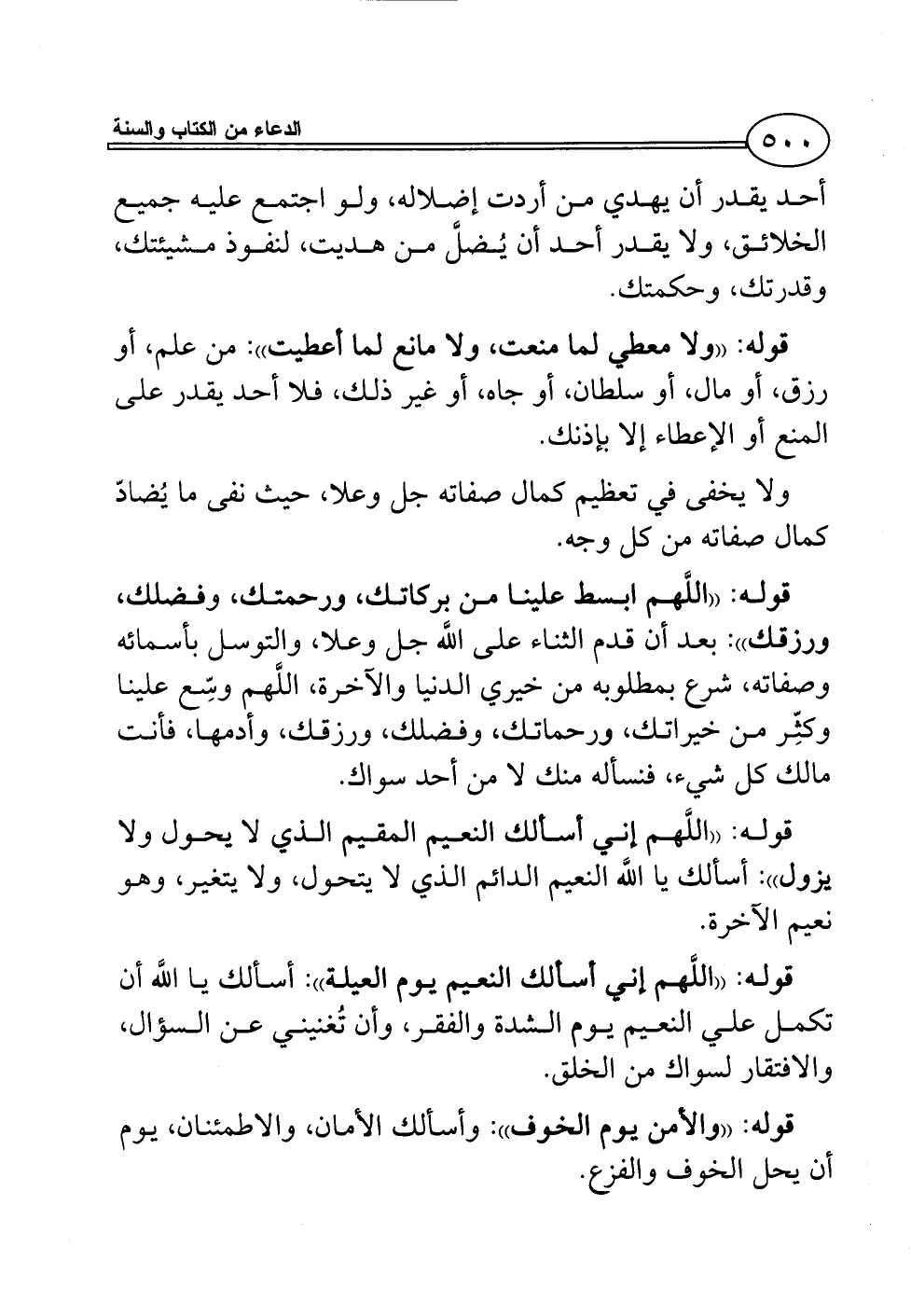 قوله: ((والأمن يوم الخوف)): وأسألك الأمان, والاطمئنان, يوم أن يحل الخوف والفزع.