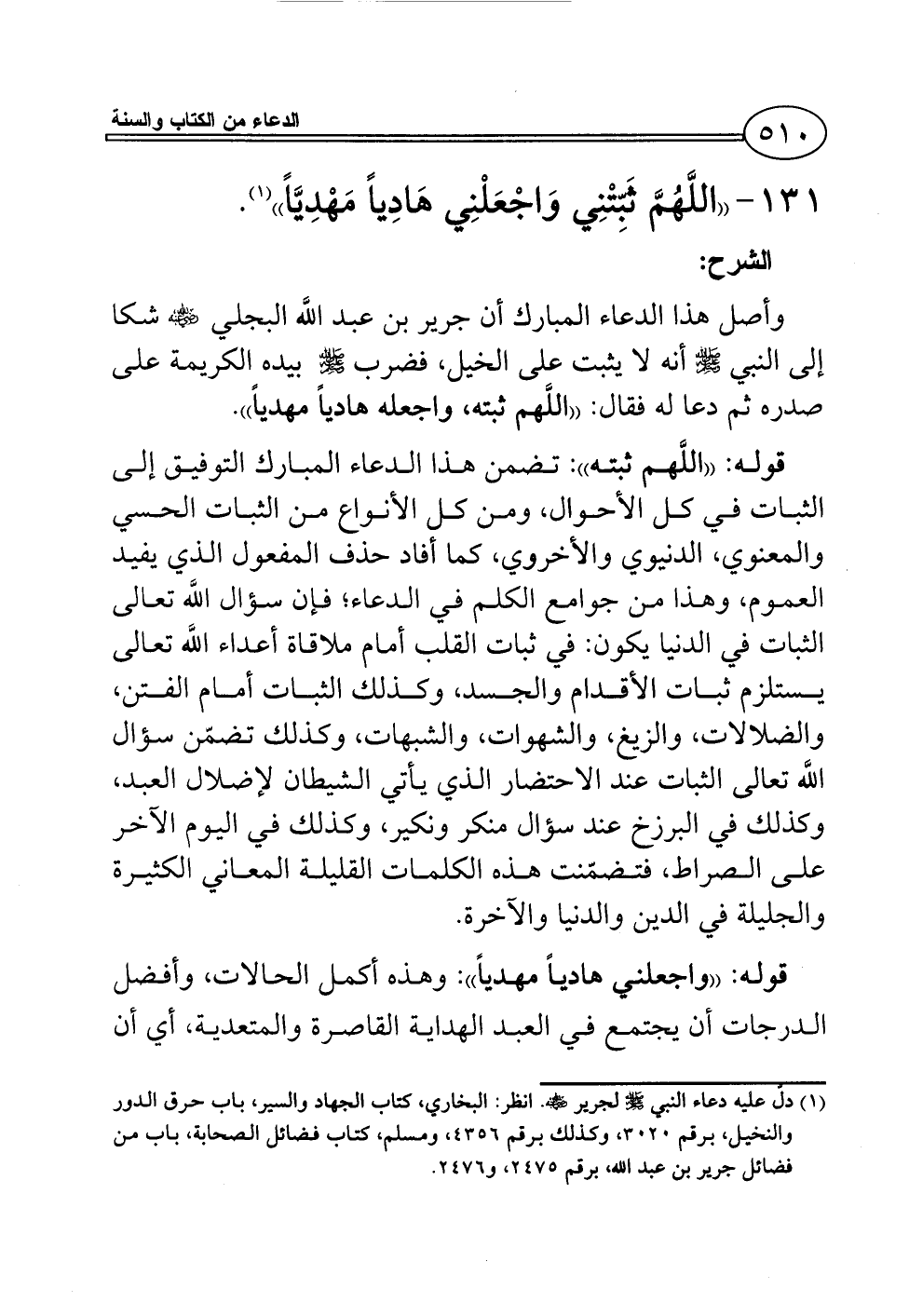131 - ((اللَّهُمَّ ثَبِّتْنِي وَاجْعَلْنِي هَادِياً مَهْدِيَّاً)) (¬2).