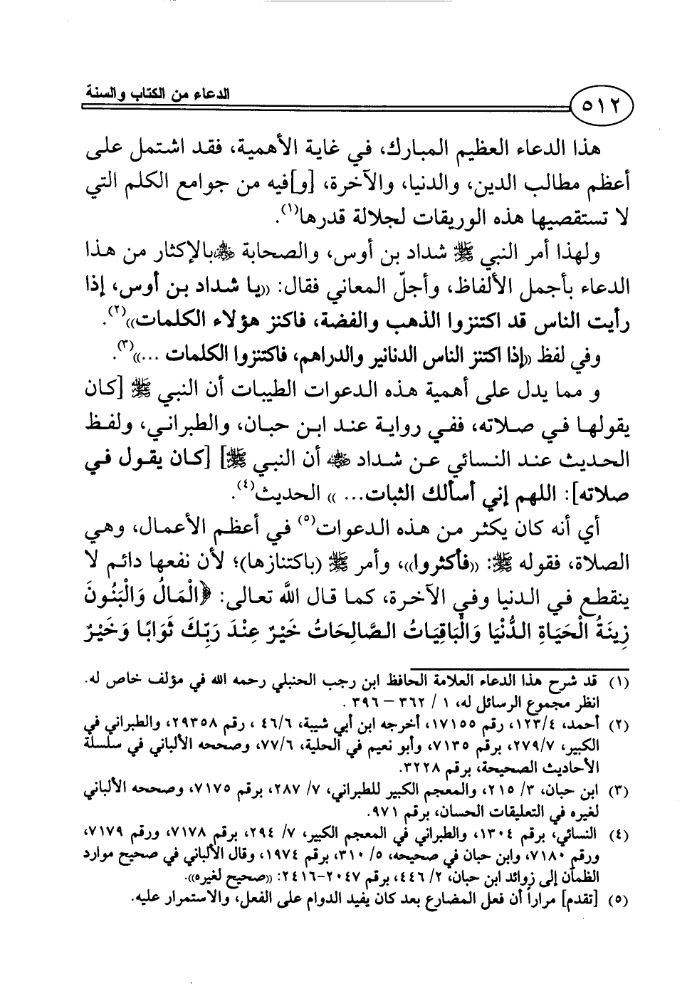 (¬1) قد شرح هذا الدعاء العلامة الحافظ ابن رجب الحنبلي رحمه الله في مؤلف خاص له. انظر مجموع الرسائل له، 1/ 362 - 396.